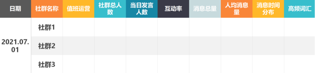 同樣的,在社群激活階段,我們依然可以通過(guò)創(chuàng)建一個(gè)表格來(lái)便于我們對(duì)數(shù)據(jù)的統(tǒng)計(jì)。