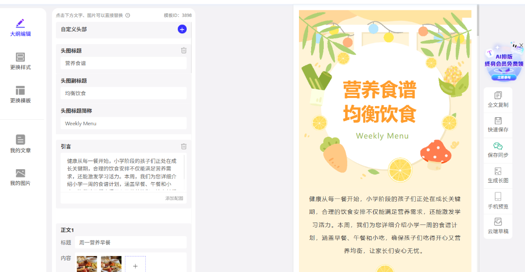 除此之外,隨著人工智能技術(shù)的飛速發(fā)展,AI 賦能創(chuàng)作已成為推動(dòng)行業(yè)變革的核心力量。135 編輯器緊跟技術(shù)發(fā)展趨勢(shì),通過(guò)全棧接入滿血版 DeepSeek,構(gòu)建了AI排版功能,該功能深度融合文案生成與自動(dòng)排版能力,幫助教育行業(yè)運(yùn)營(yíng)者快速提高排版效率,以往花費(fèi)1小時(shí)的工作量,現(xiàn)在只需10分鐘即可搞定,效率提升300%。