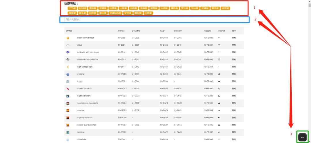 3.如果你下滑表情太多,點(diǎn)擊此按鈕,可以快速回到頂部哦。