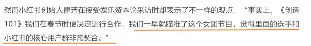 2018 年,小紅書分別在綜藝節(jié)目《創(chuàng)造 101》和《偶像練習(xí)生》中投放了媒體廣告,包括中插、口播、后期字幕等。