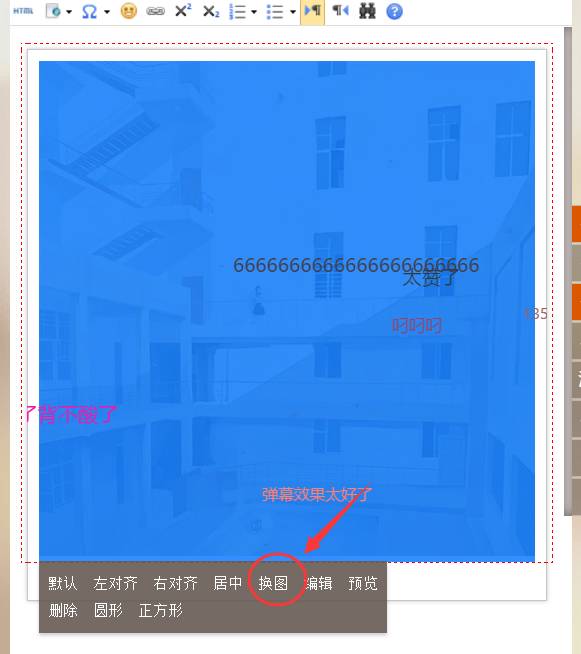 135提供了兩種彈幕樣式,一種是有背景圖的,一種是沒(méi)有背景圖的。只要點(diǎn)擊背景圖,選擇【換圖】即可更換你想要的背景圖。示例: