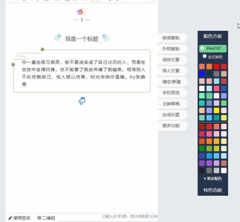 作為135編輯器最核心,最牛逼,最方便的功能,秒刷共,絕對(duì)是你選擇135編輯器的不二理由,所見(jiàn)即所得,一鍵秒刷,不必手動(dòng)修改粘貼,免去復(fù)制麻煩,也減少錯(cuò)誤率,同時(shí)還保留了機(jī)動(dòng)性,無(wú)論是粘貼移動(dòng)還是保存換色都可以一鍵操作。