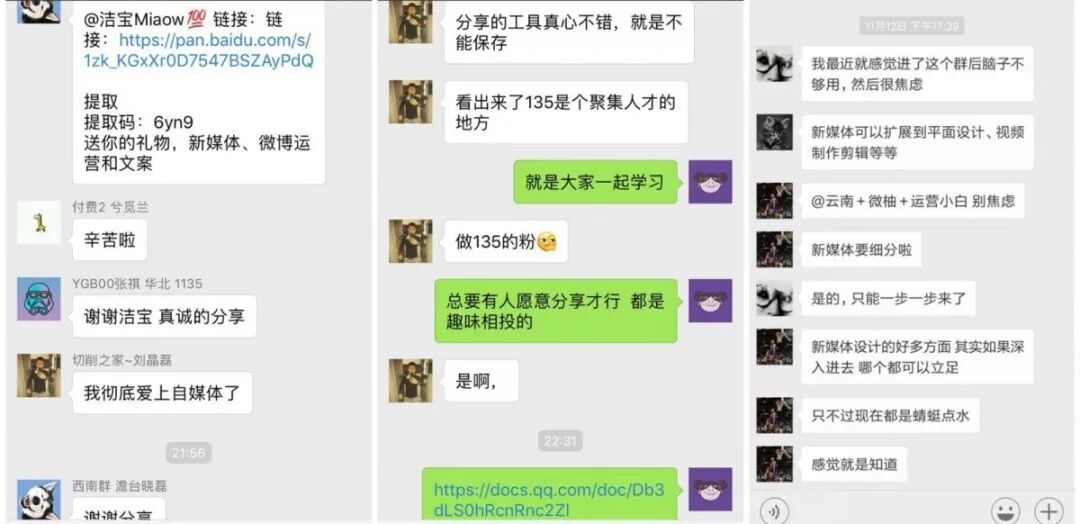在我們的官方社群,還有這么一群人,他們來自全國各地,他們會為一個(gè)熱點(diǎn)討論一下午,也會為一篇文章的排版做技巧分析,他們會為一個(gè)新手小白的問題錄一段教學(xué)視頻,也會把網(wǎng)上搜集的學(xué)習(xí)資料發(fā)出來跟大家共享……