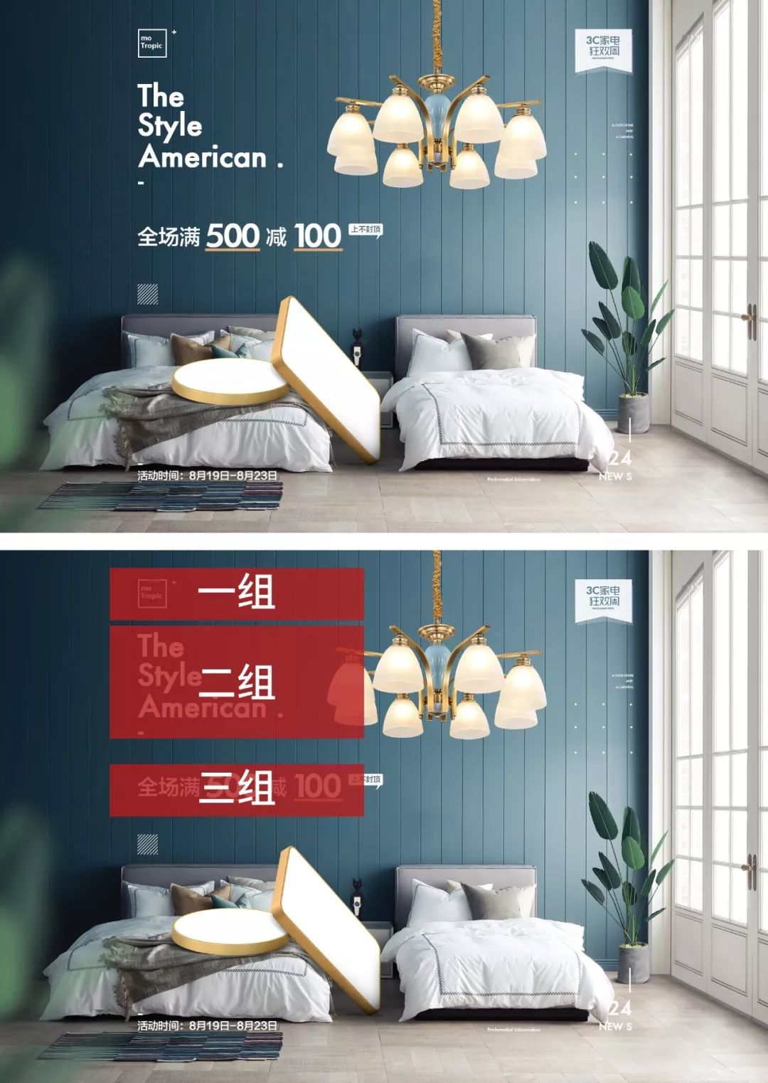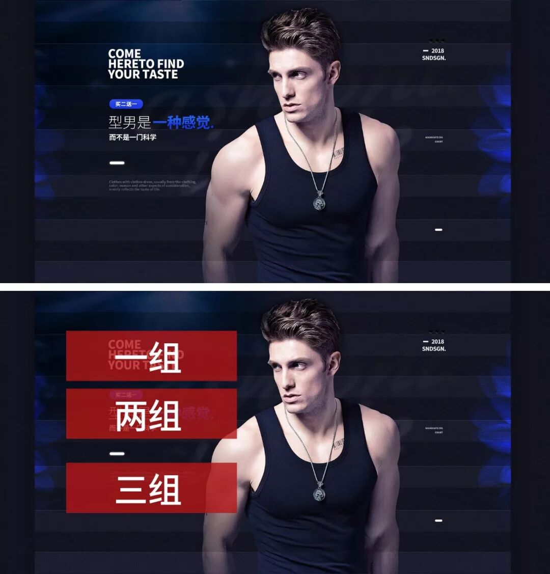 第二:設(shè)計中的文字排版要始終有分組的概念,具體分幾組要試情況而定,但是在一般情況下,文字排版分組最少分為兩組,目的是為了提升文案信息閱讀的流暢性、以及避免造成壓迫感;而最多不要超過四組,目的是分組過多會給人一種松散、不夠整體的感受!