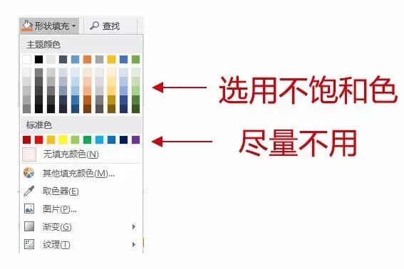 當(dāng)飽和的紅黃藍(lán)和白色或者黑色攪拌時就會形成灰度不同帶有不同顏色傾向的灰顏色,這就是不飽和色。我們在ppt里和各種排版軟件中都能找到。