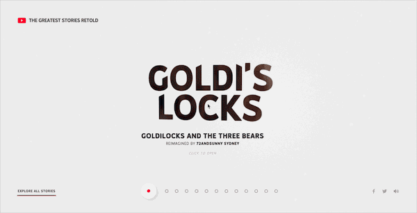YouTube在Greatest Strories Retold網(wǎng)站項(xiàng)目中也利用了這個(gè)技巧,把人物視頻融入了文字標(biāo)題中。