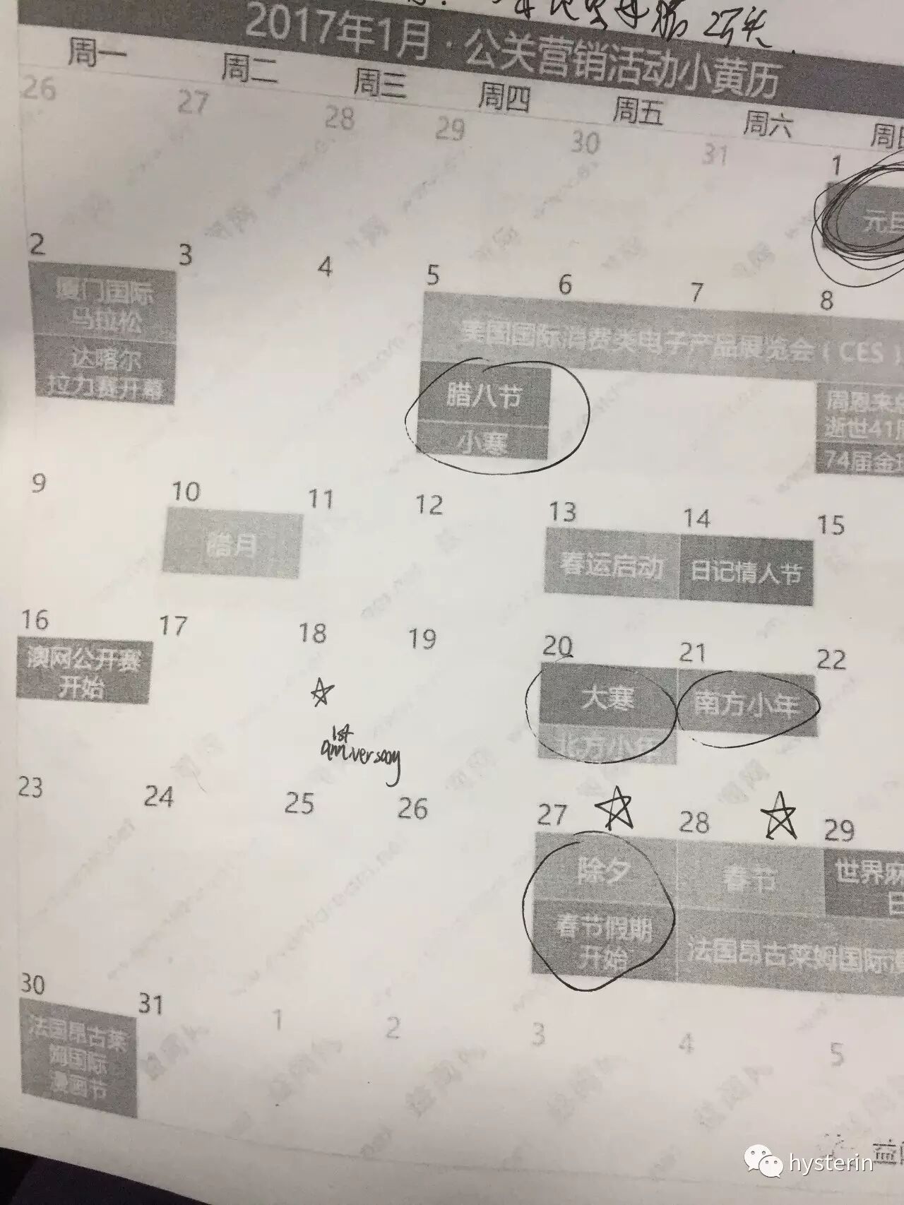 但是運營工作不一樣,用好日歷本,是入門的關(guān)鍵。有個非常重要的原因:爆發(fā)事件難預(yù)測,但固定熱點不會變。