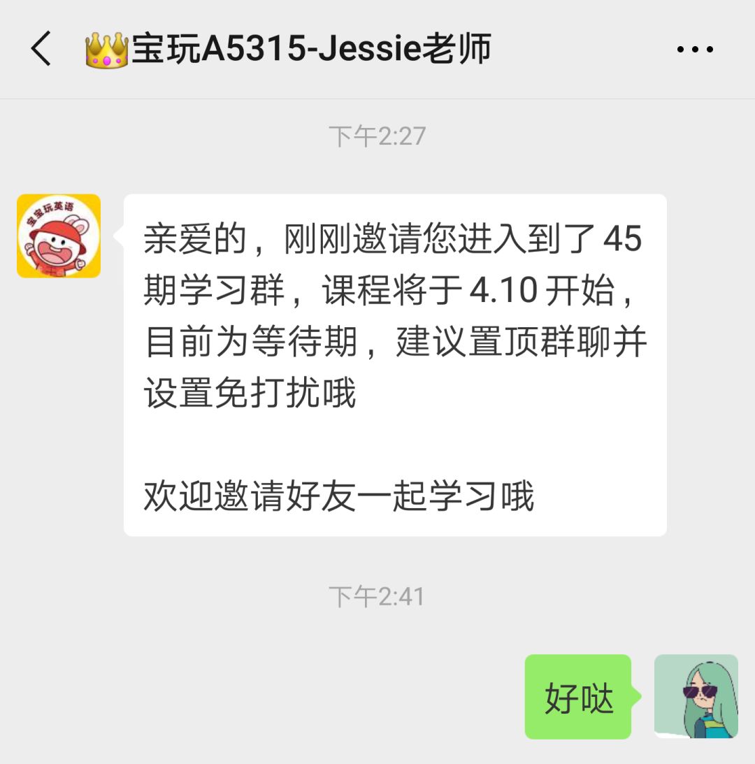 報名試聽課成功后,老師會邀請用戶進入課程群,同時提醒用戶邀請好友一起學(xué)習(xí)。