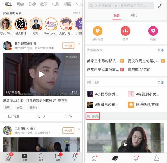 我們再來看看國際版,淘寶去掉了“微淘”模塊,微博雖然把視頻移到了搜索頁,但是只有“熱門視頻”一欄,不再有更細(xì)分的分發(fā)。