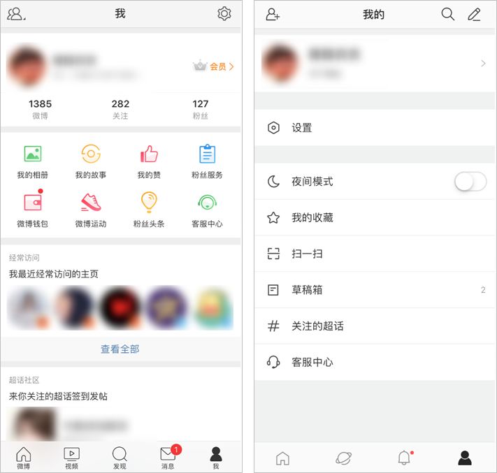 左國內(nèi)版微博,右海外版微博