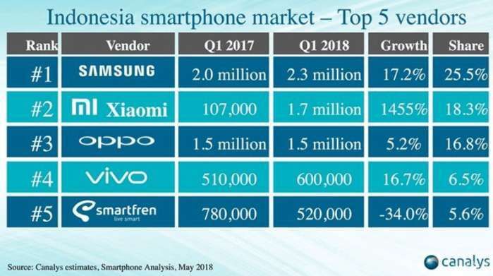 印尼市場智能手機(jī)市場