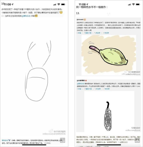 還有《你畫我猜案例選》,因?yàn)椴┪锸艿降陌靥釂栔?,有的不是網(wǎng)友拍攝的照片,而是畫出來的,這其中,有的畫技精湛,有的“抽象成謎”,博物把這些案例做了匯總,可以說非常有趣了,轉(zhuǎn)發(fā)量也達(dá)到了近 5 萬。