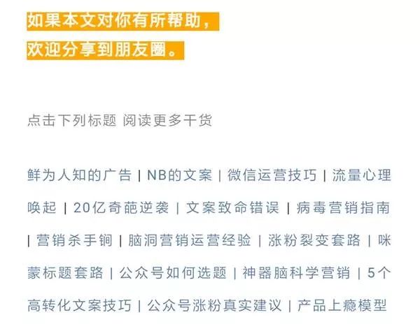 這就跟賣產(chǎn)品一樣,除了產(chǎn)品本身好,我們還需要給用戶一個(gè)購(gòu)買的理由。做內(nèi)容也同樣需要給用戶一個(gè)分享的理由。
