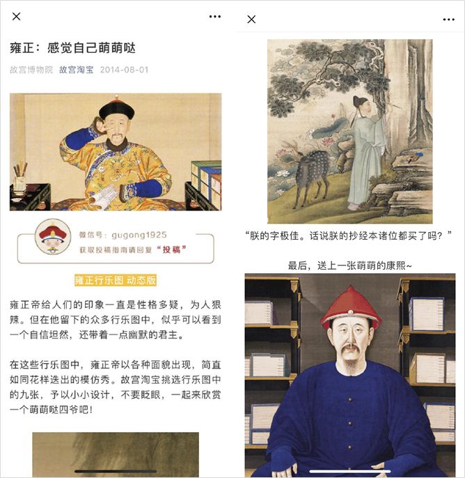 很多人了解故宮文創(chuàng),可能是從 2014 年“故宮淘寶”公眾號(hào)推出的 《雍正:感覺自己萌萌噠》開始的,這篇文章讓雍正皇帝的表情包一炮走紅。