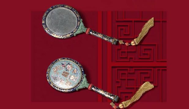 在故宮博物院中有一個(gè)藏品,叫做「銅胎畫琺瑯八寶雙喜字背把鏡」,是清晚期廣東進(jìn)呈朝廷的貢物,代表了清朝高超的制鏡工藝水平,同時(shí)也是帝后大婚的妝奩陪嫁之一。