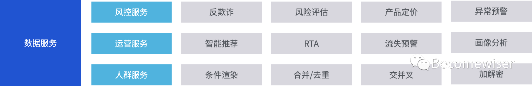 標(biāo)準(zhǔn)是指,我們?cè)趺炊x一個(gè)完整的數(shù)據(jù),需要有名稱、值類型、取值的范圍、加工的邏輯等。而權(quán)限則決定這個(gè)數(shù)據(jù)歸屬于誰管控,密級(jí)程度又決定了不同角色的操作,包括讀、寫以及使用。最后的質(zhì)量部分則是通過對(duì)應(yīng)的監(jiān)控措施保障數(shù)據(jù)質(zhì)量,數(shù)據(jù)是否及時(shí)更新,更新的進(jìn)度和速度是否符合預(yù)期,生成的數(shù)據(jù)是否符合規(guī)范,量級(jí)波動(dòng)是否達(dá)到了告警線。假設(shè)一切正常,它又是否正常的被下游消費(fèi),消費(fèi)過程又是否存在阻塞。數(shù)據(jù)服務(wù),這個(gè)詞廣義的說數(shù)據(jù)的采集、處理、管理都是一種服務(wù)。在這里特指的是供給實(shí)際運(yùn)營(yíng)的服務(wù),例如:人群服務(wù)、風(fēng)控服務(wù)、運(yùn)營(yíng)服務(wù)。具備了數(shù)據(jù),就能夠?qū)Σ煌膱?chǎng)景制定不同的風(fēng)控評(píng)分規(guī)則,用于識(shí)別黑產(chǎn)、金融產(chǎn)品售前評(píng)估、金融產(chǎn)品的定價(jià)。異常監(jiān)控則指當(dāng)號(hào)碼、賬戶發(fā)生了凍結(jié)等情況可能造成用戶的違約,在金融產(chǎn)品層面做預(yù)警。智能推薦實(shí)質(zhì)也依賴于數(shù)據(jù)平臺(tái),通過用戶的特征輸出推薦結(jié)果。RTA則運(yùn)用于廣告,基于特征決定是否參與定價(jià)。人群服務(wù)會(huì)運(yùn)用于用戶運(yùn)營(yíng)平臺(tái)的“選用戶”環(huán)節(jié),數(shù)據(jù)的管理能夠提供可選擇的用戶條件,進(jìn)行前端渲染。而選完條件后則涉及數(shù)據(jù)的去重,不同人群包之間的計(jì)算,在最后的運(yùn)用環(huán)節(jié)又涉及到了加解密。這個(gè)部分在下文會(huì)詳細(xì)描述。描述完了底層支持,下一個(gè)部分就是用戶運(yùn)營(yíng)平臺(tái)的表現(xiàn)層“用戶圈選”,那數(shù)據(jù)平臺(tái)到底是怎么為“用戶圈選”提供能力的呢?3-2、產(chǎn)品表現(xiàn):用戶圈選在選取用戶時(shí)須考量的產(chǎn)品功能為:圈選方式、圈選頻次、圈選條件及人群服務(wù)。實(shí)質(zhì)上這4個(gè)功能的底層支持都來自于用戶數(shù)據(jù)平臺(tái),用戶運(yùn)營(yíng)平臺(tái)則負(fù)責(zé)服務(wù)的運(yùn)用及表現(xiàn)。
