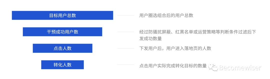干預(yù)成功用戶數(shù):經(jīng)過防騷擾屏蔽、紅黑名單或運(yùn)營(yíng)策略等判斷條件過濾后下發(fā)成功數(shù)量
