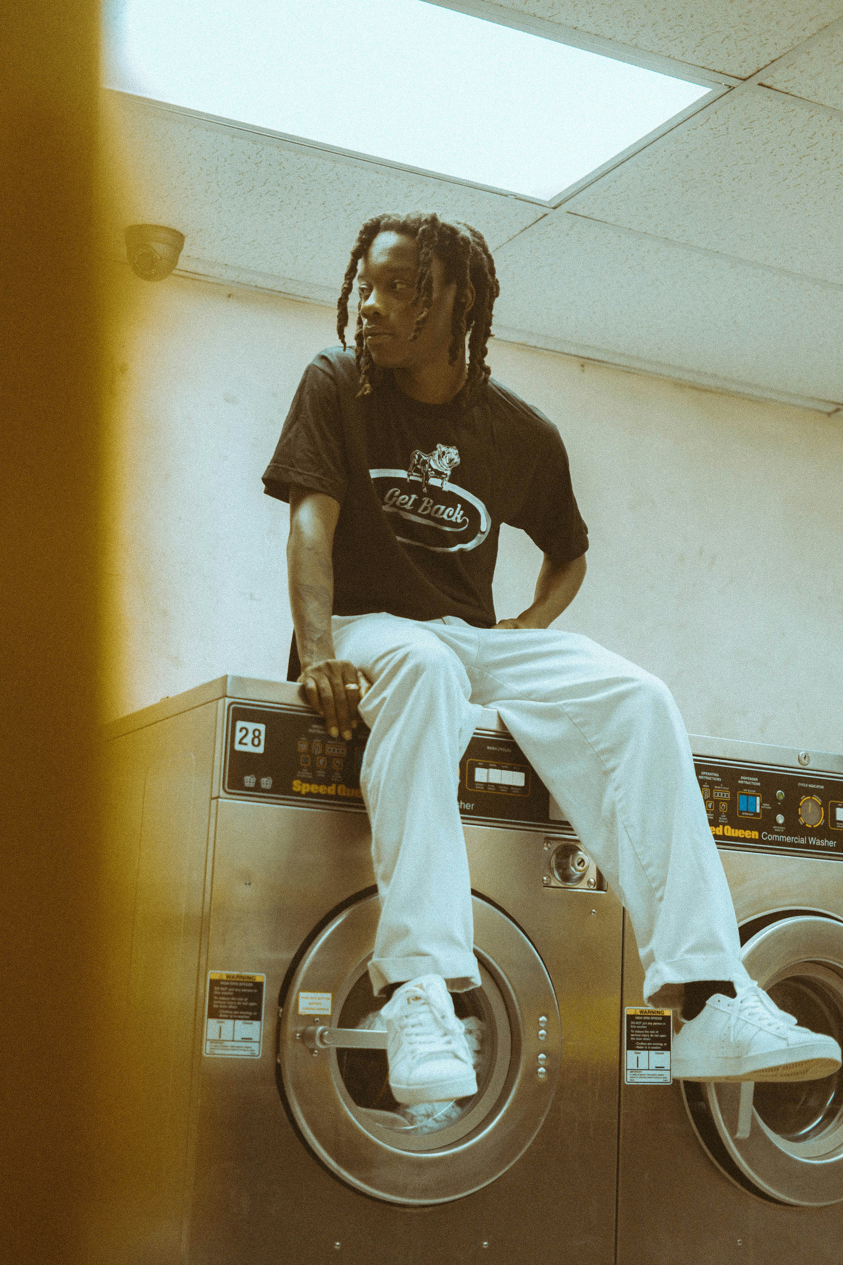肖像,人,非裔美國人,洗衣,燈,洗衣房,男人,衣服,鞋子,陰影,風格,復古,復古,滑冰,朋克,垃圾,街道