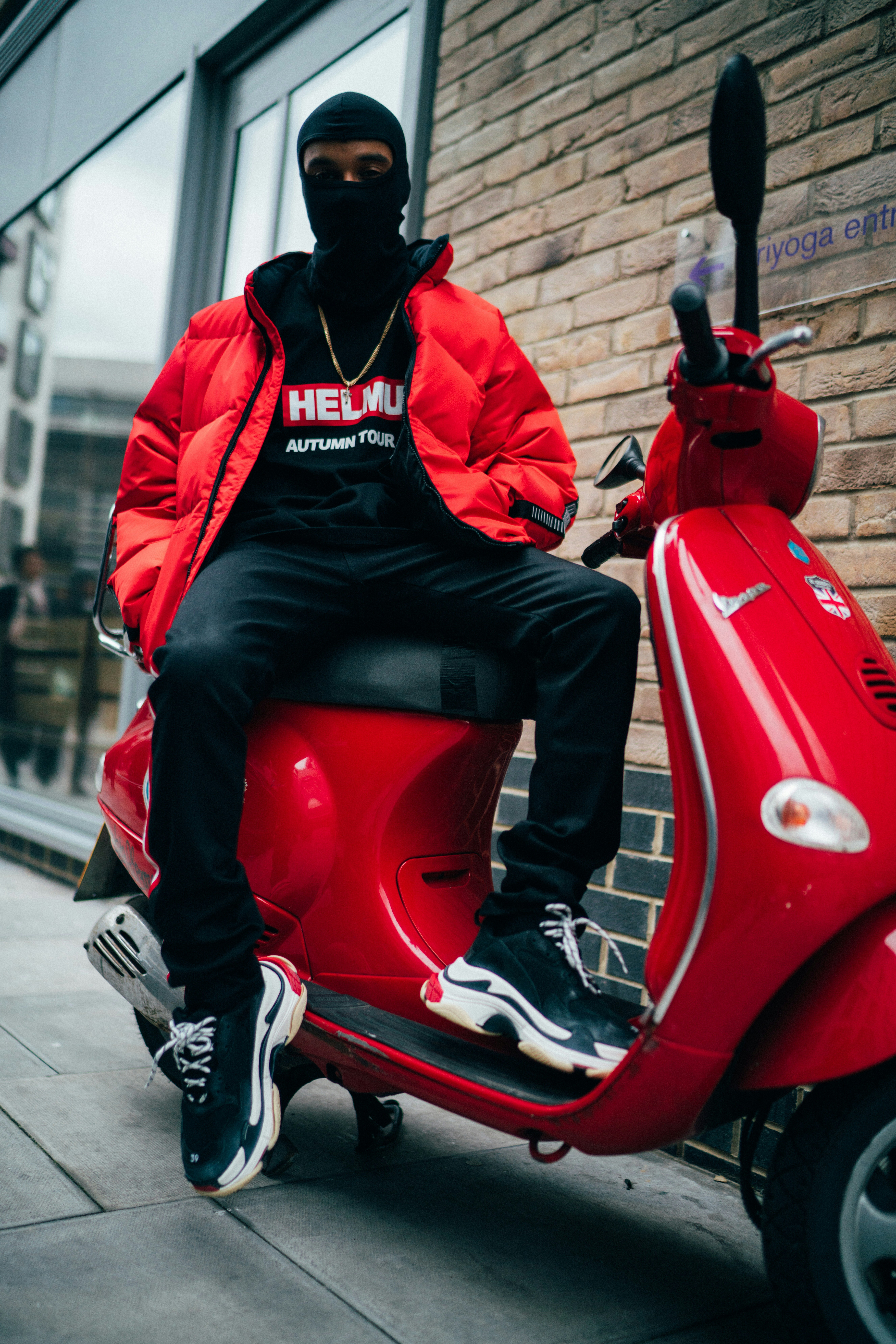 滑板車、維斯帕、面罩、紅色、街頭時尚、赫爾穆特·朗、時尚、運動鞋、鞋、巴倫西亞、面具、倫敦、街頭服飾、黑色面罩、低角、摩托車