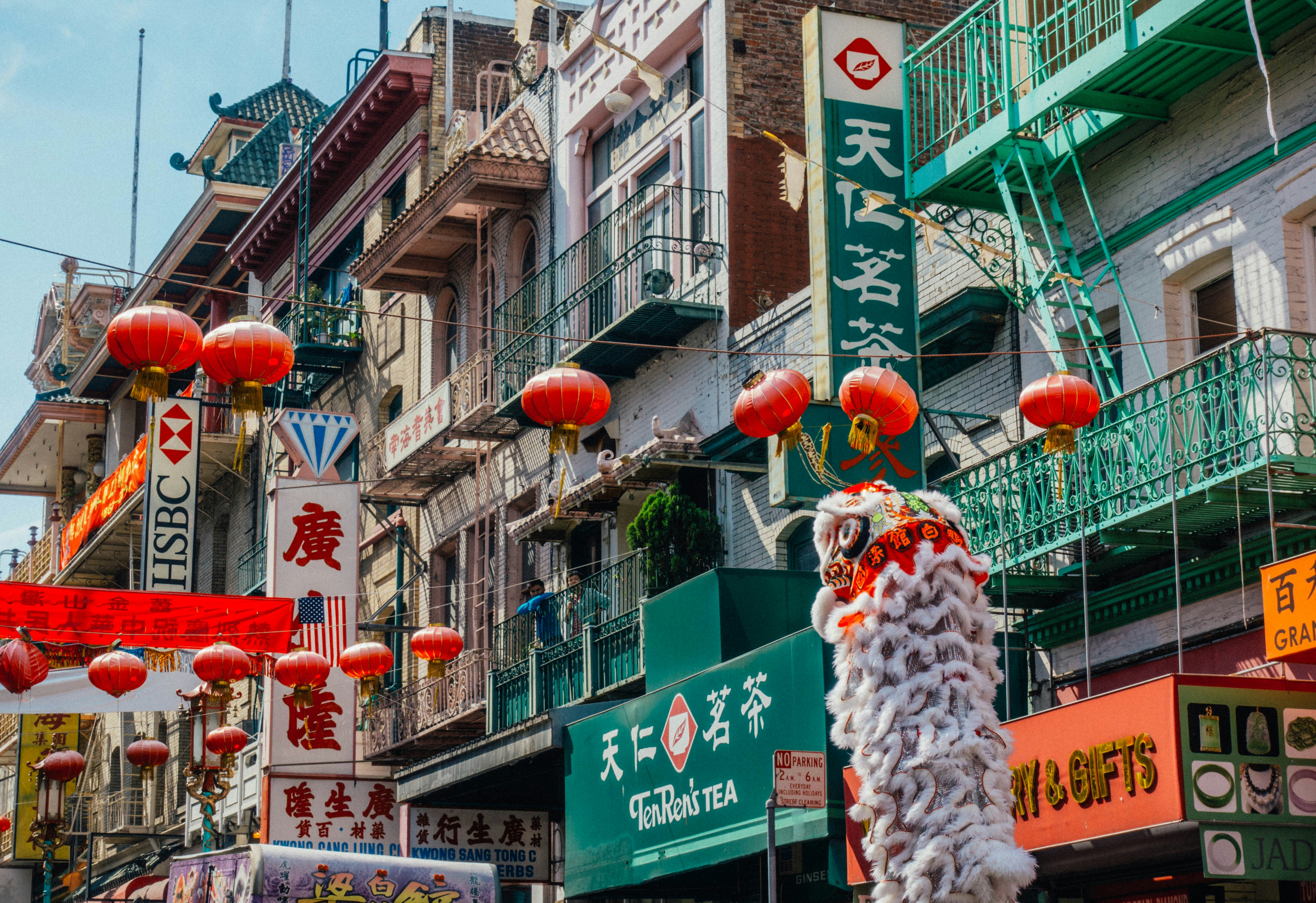 唐人街,燈籠,燈,標志,商店,陽臺,建筑,龍,嘉年華,展覽,服裝,文化,步行,美國,舊金山,美國,亞洲,中國,表演,街道