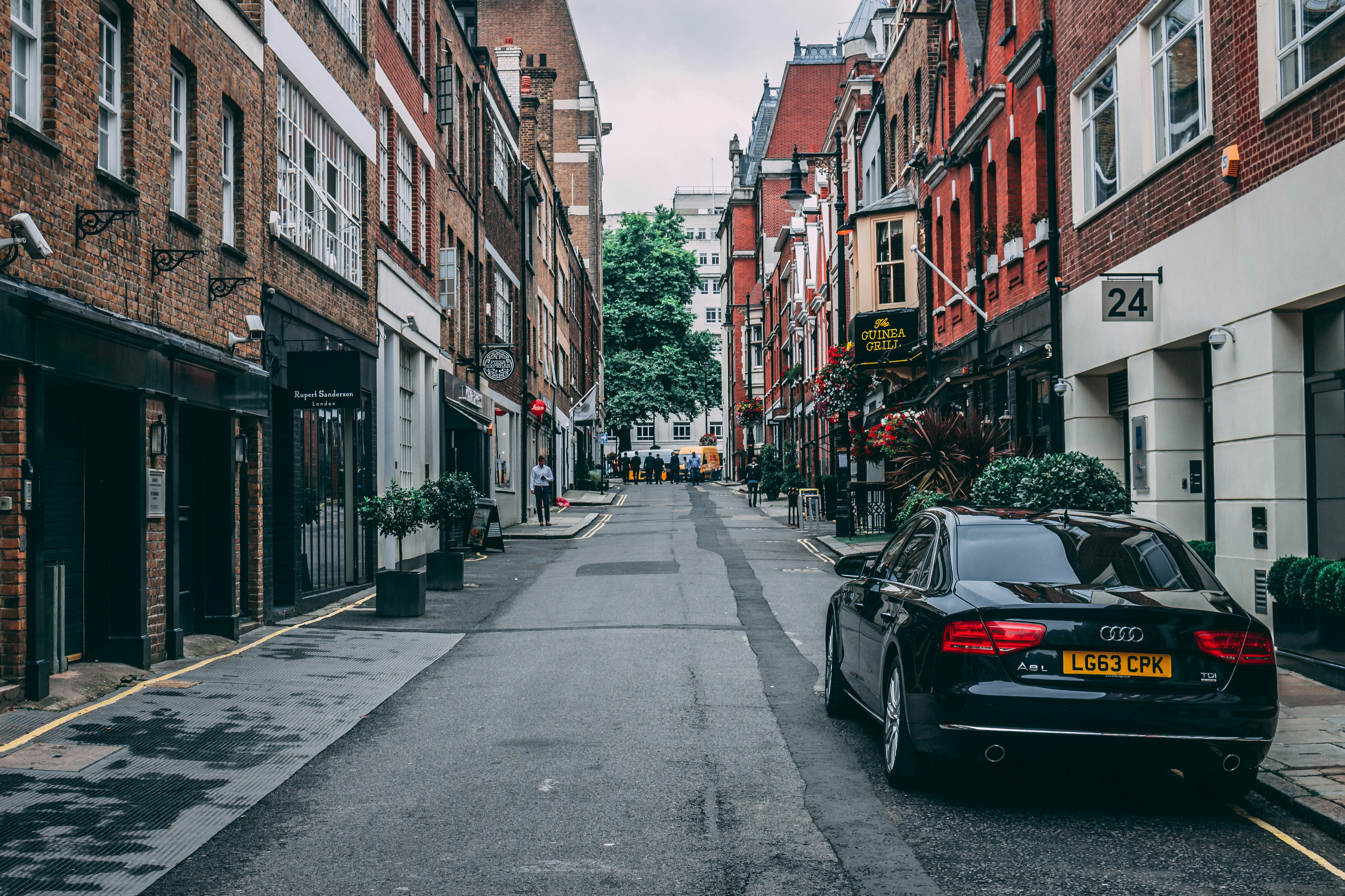 街、路、車、車、樓、樓、屋、家、店、奧迪、黑、A8、倫敦