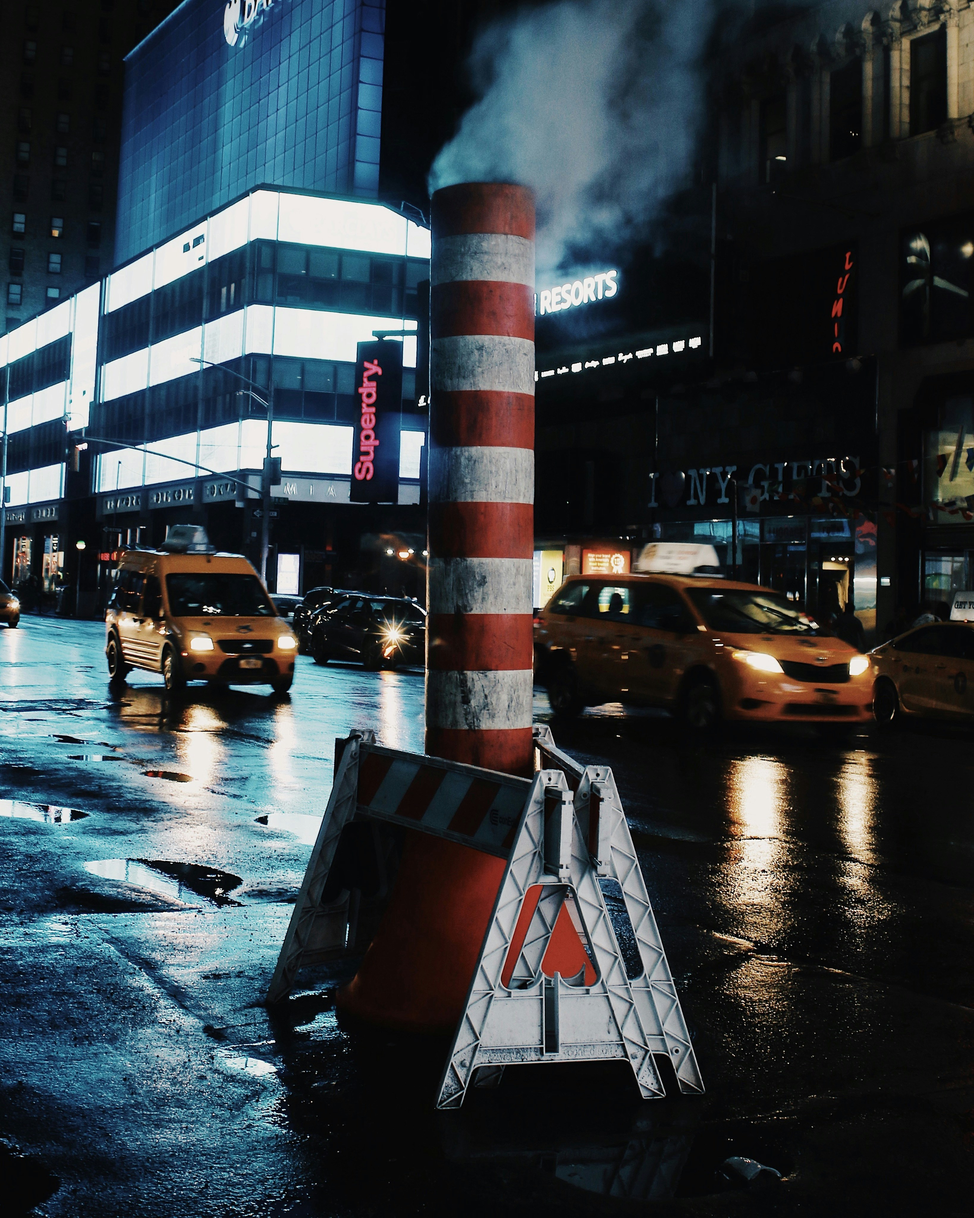 街道,汽車,出租車,蒸汽,建筑,建筑,商店,雨,濕,汽車,城市,城市,旅游,交通,建筑,紐約,紐約,光明