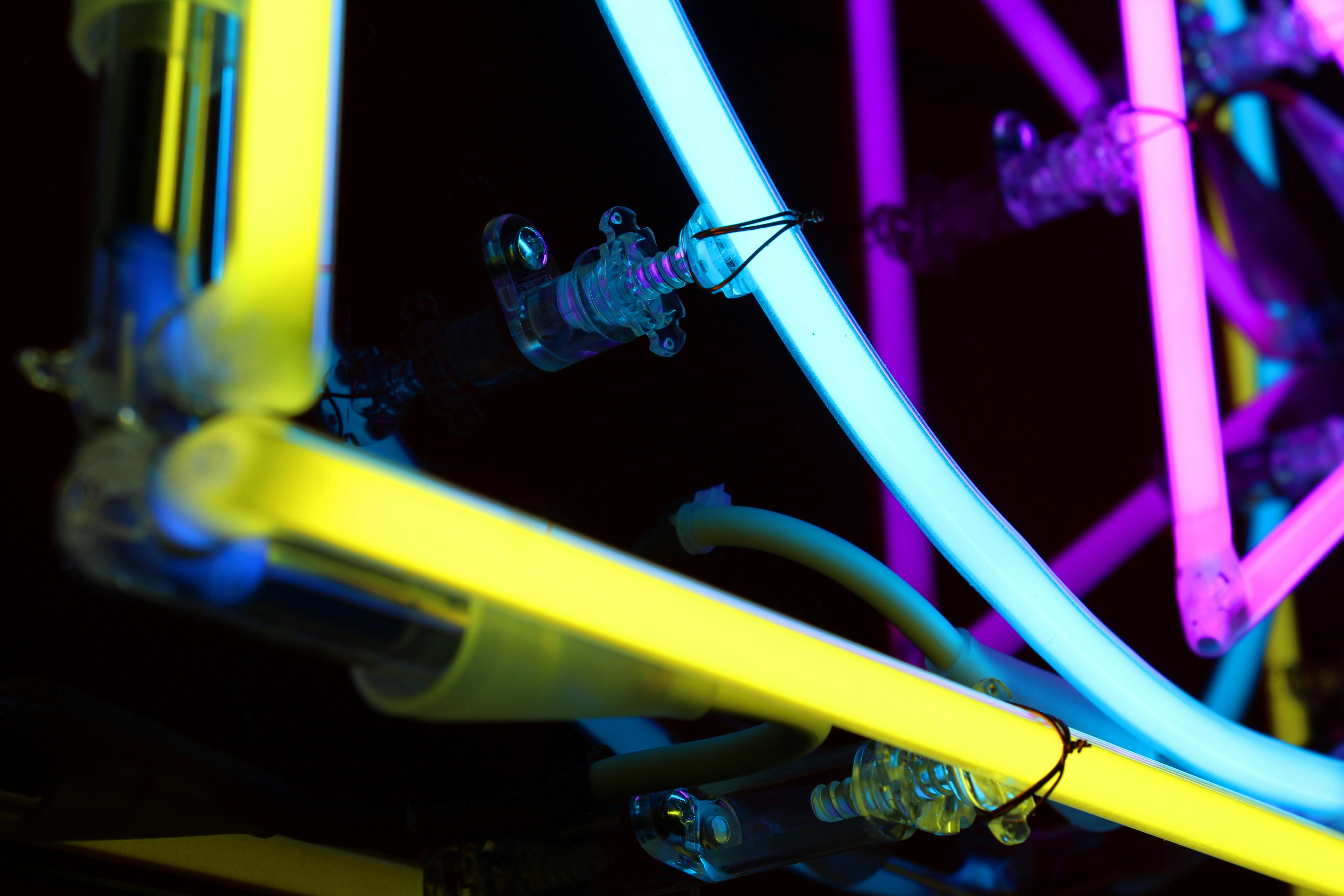 霓虹燈、燈管、燈飾、色彩、色彩、抽象、符號(hào)、部分、黃色、粉色、藍(lán)色、現(xiàn)代、管子、管子