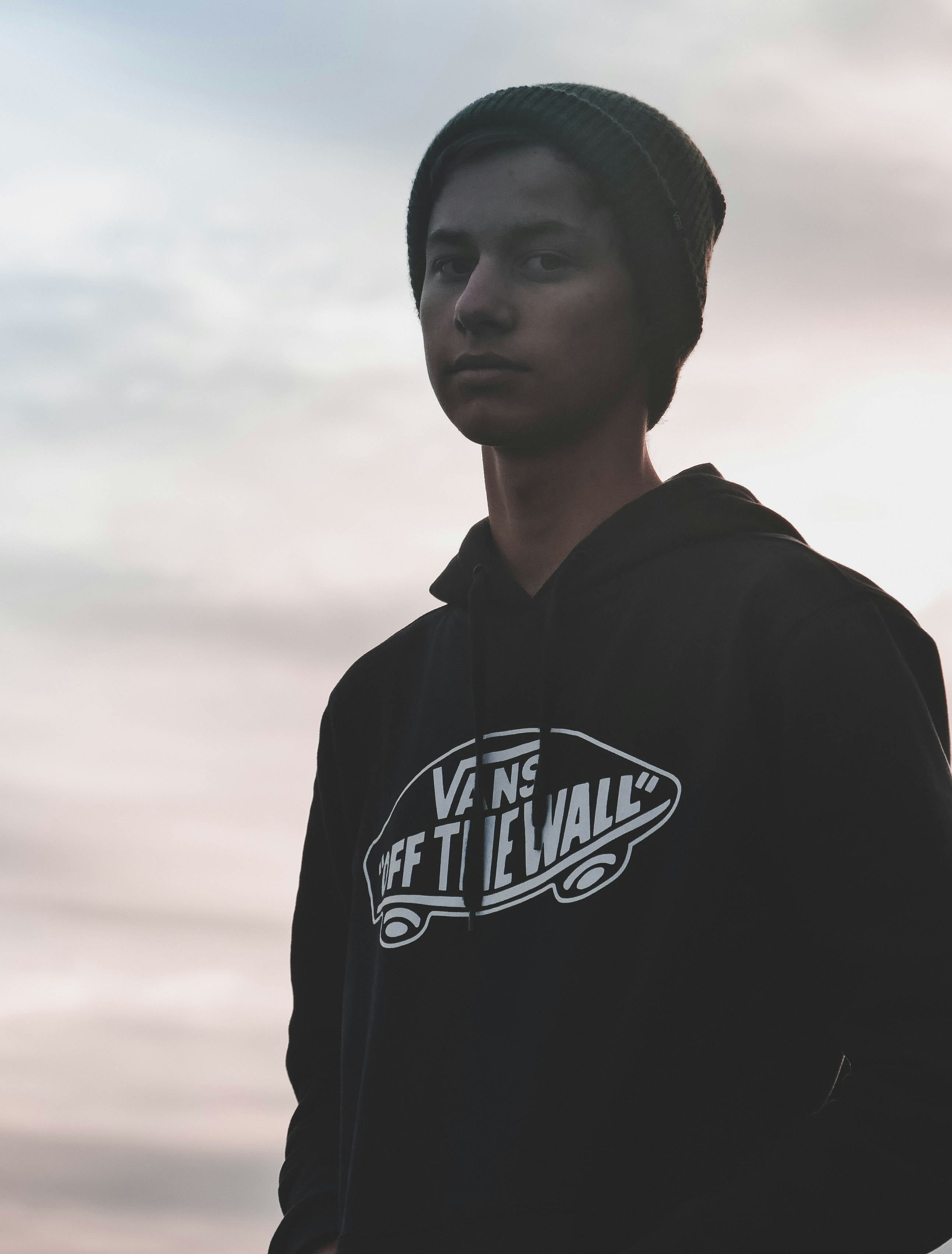 男人、男人、肖像、模特、時尚、帽衫、青春、手、臉、街、城市、藝術(shù)、涂鴉、高加索、酷熱、喜怒無常