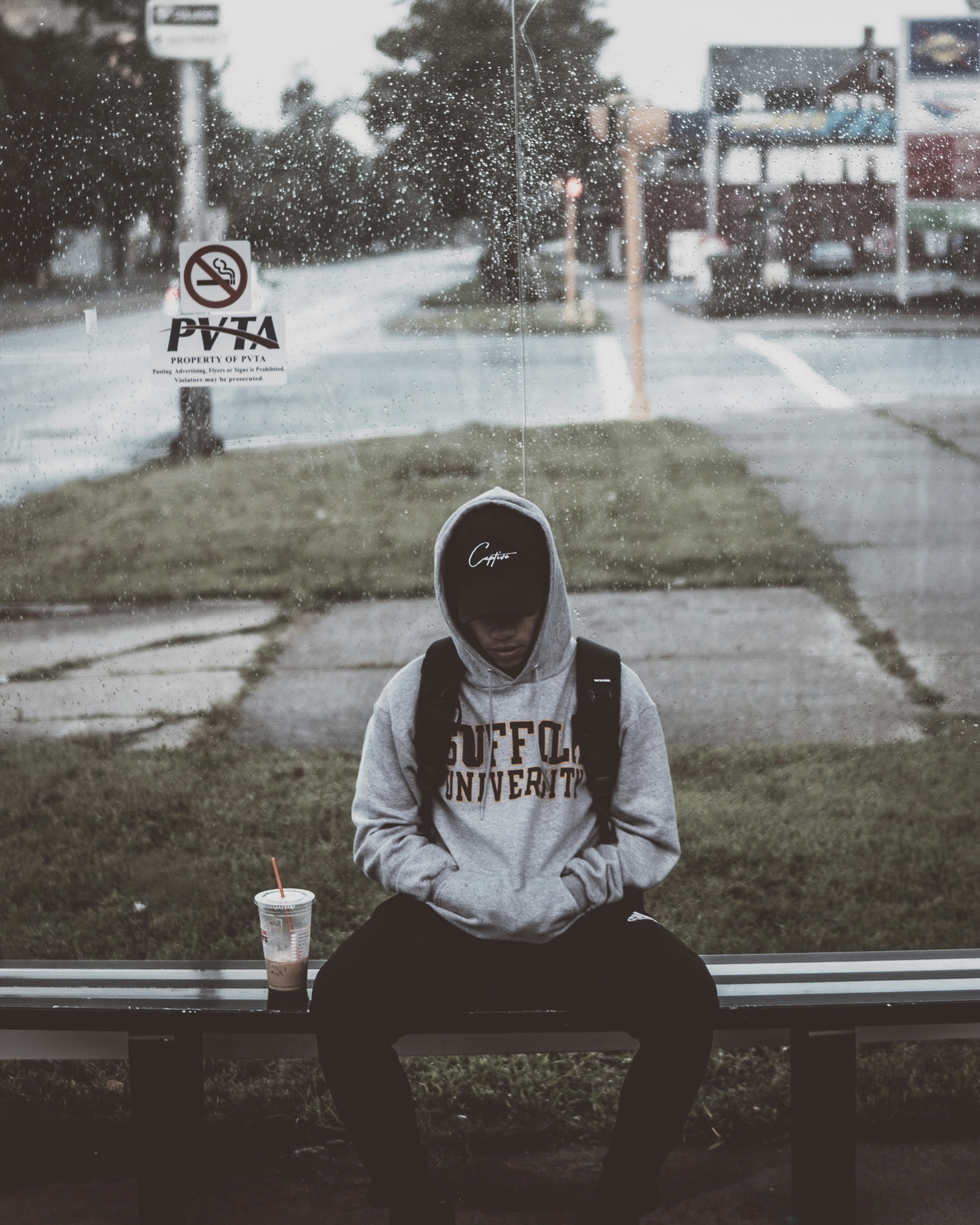 男性,城市,街道,肖像,雨,喜怒無常,長凳,連帽衫,背包,人物,特征,不浮雕,土坯,制作,電影,instagram,視頻,bokeh,極簡主義,極簡主義