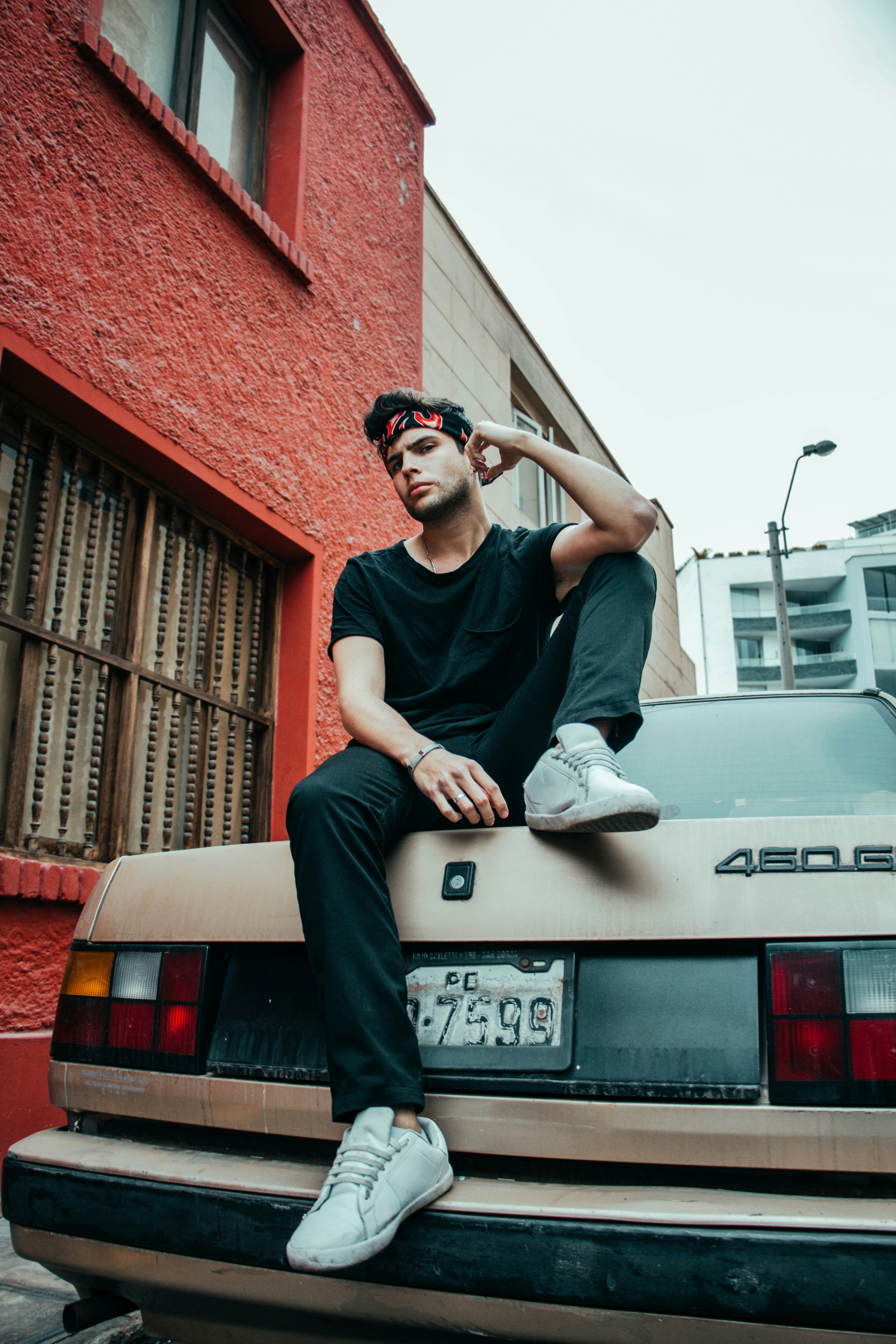 男,男,車,舊,古董,古典,模特,肖像,房子,建筑,紅色,街道,城市,街道,風格,風格,時尚