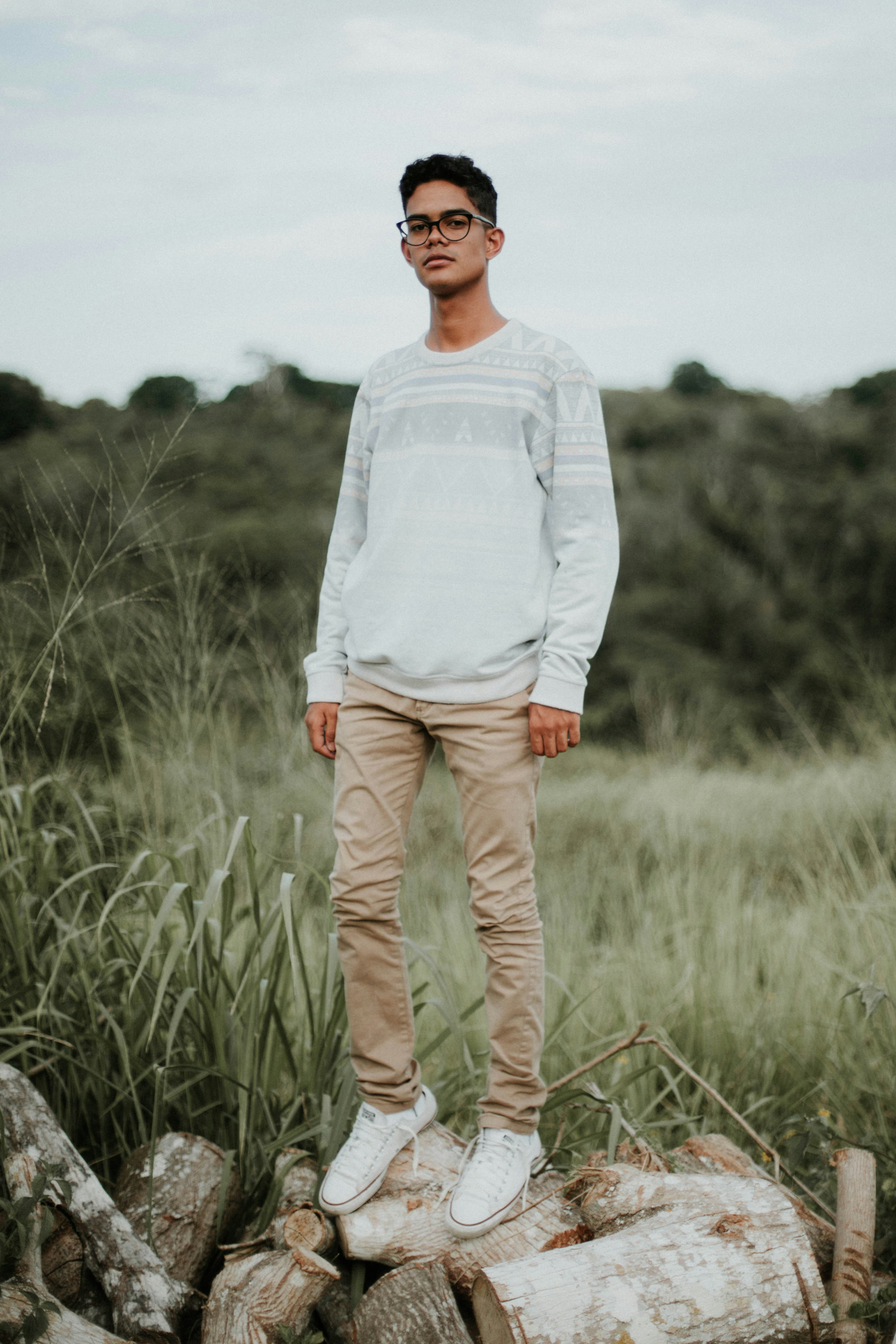 男人,男人,男人,肖像,眼鏡,愛情,時尚,夾克,玻璃,木樁,站立,白色,白色,白色空間,印第安人,牛仔褲,綠色,銼,戶外,現(xiàn)代肖像,當代,森林