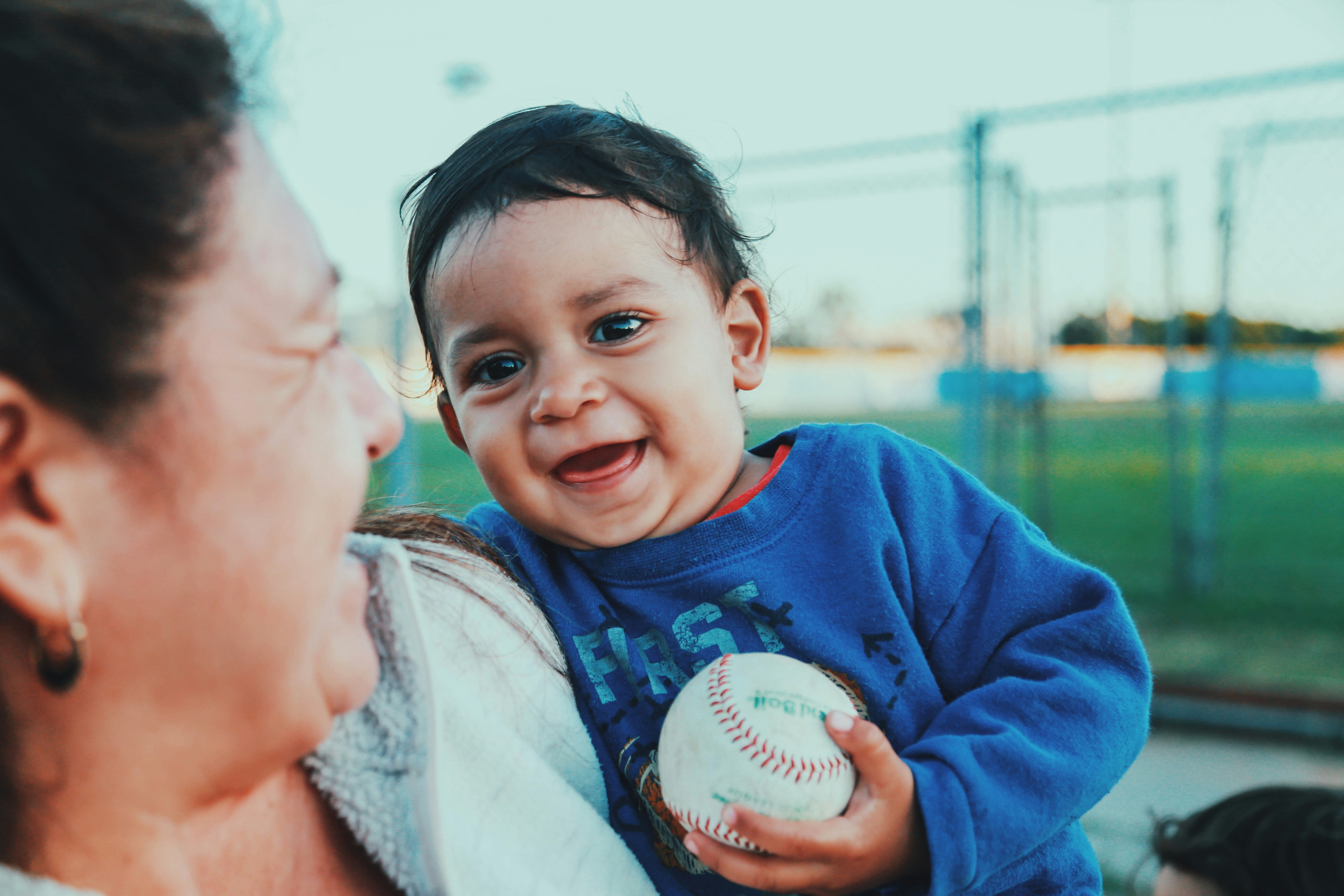 孩子,棒球,母親,快樂,微笑,微笑,家庭,棒球場,運(yùn)動,童年