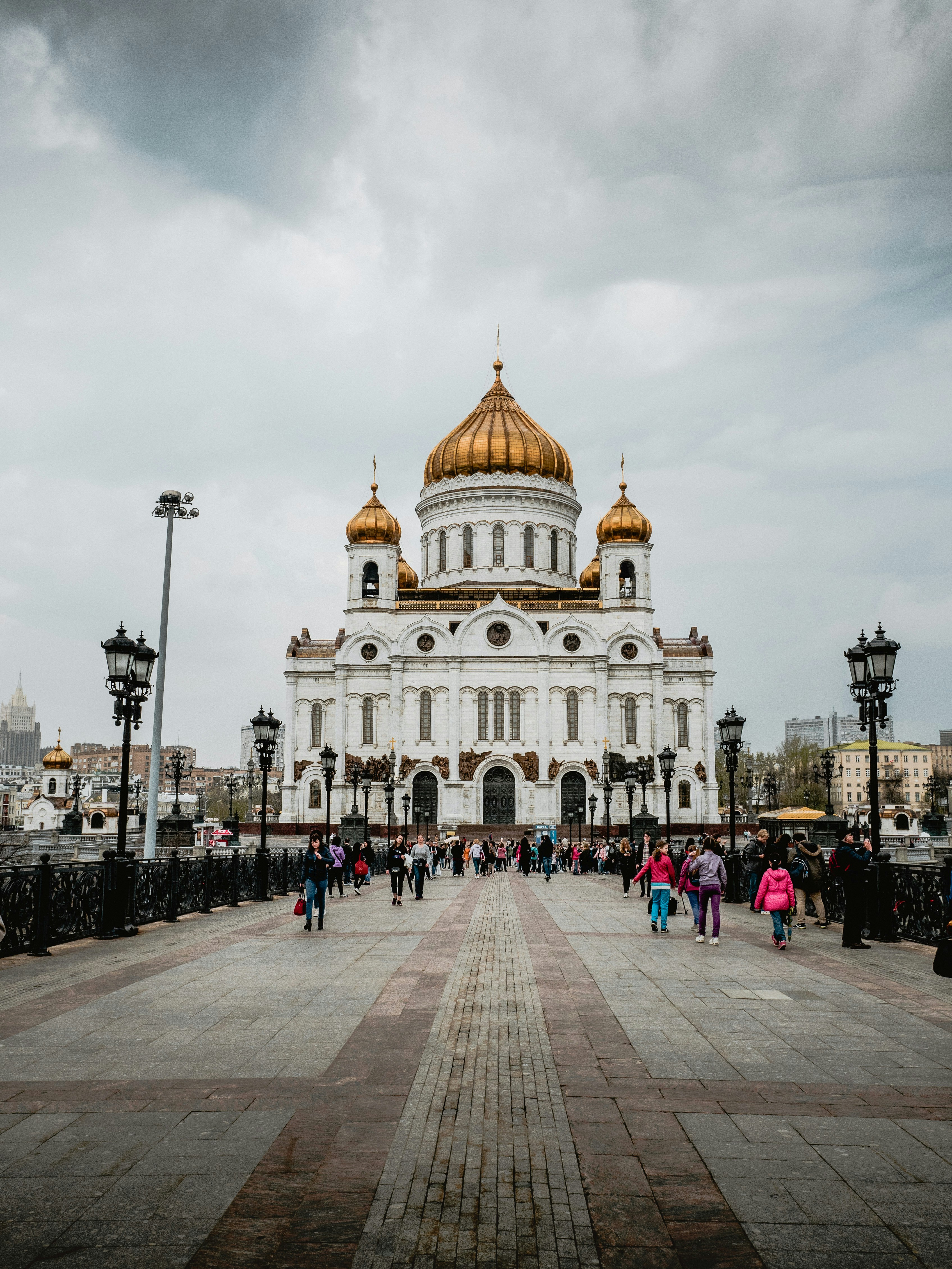 建筑物、城市、街道、人、教堂、大教堂、俄羅斯、金、云、白、柱、光、石、路、天空、灰色、情緒、攝影、中心、克里姆林