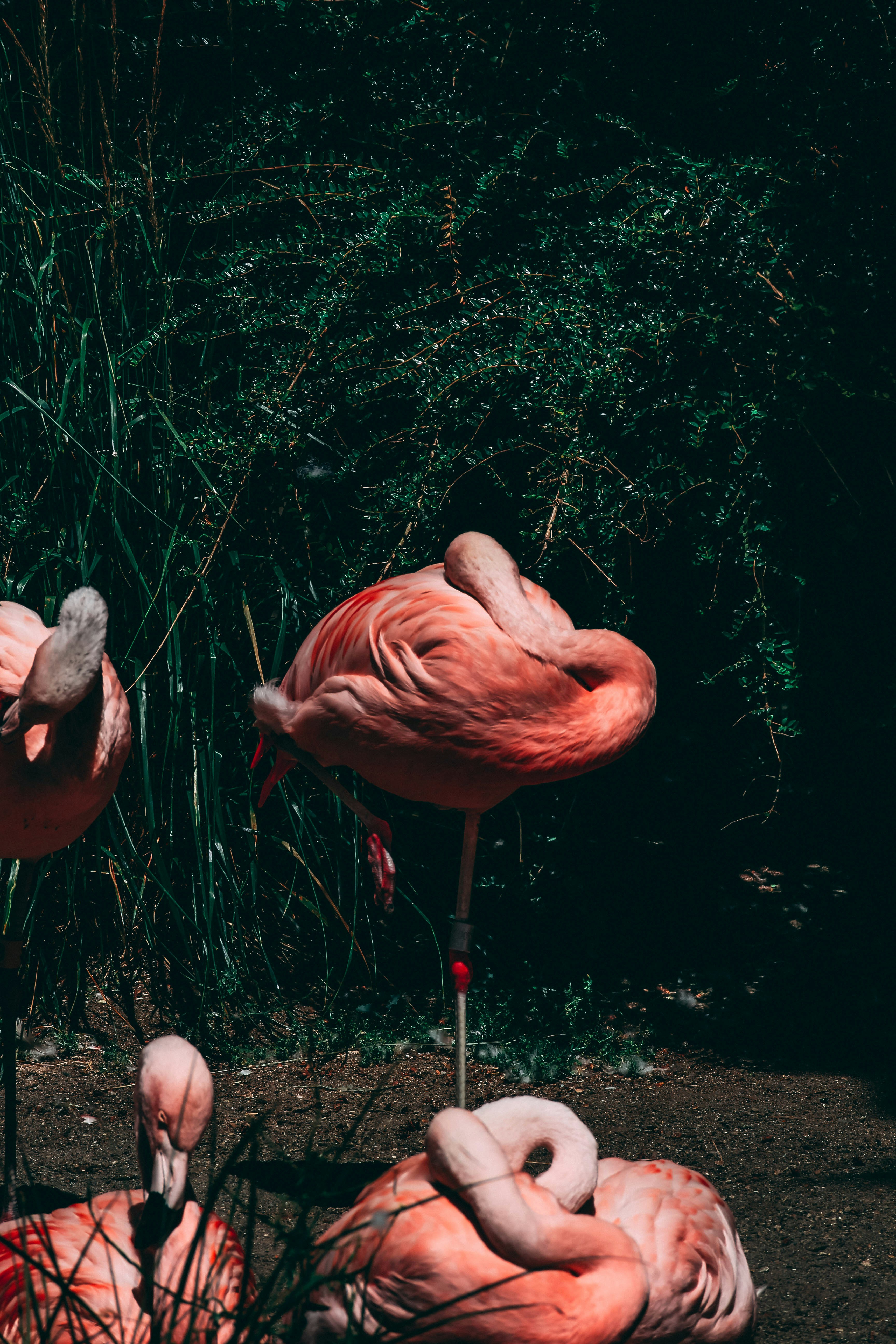 鳥,火烈鳥,夏天,粉色,羊群,腿,翅膀,羽毛,外面,動(dòng)物園,顏色,野生動(dòng)物,五顏六色