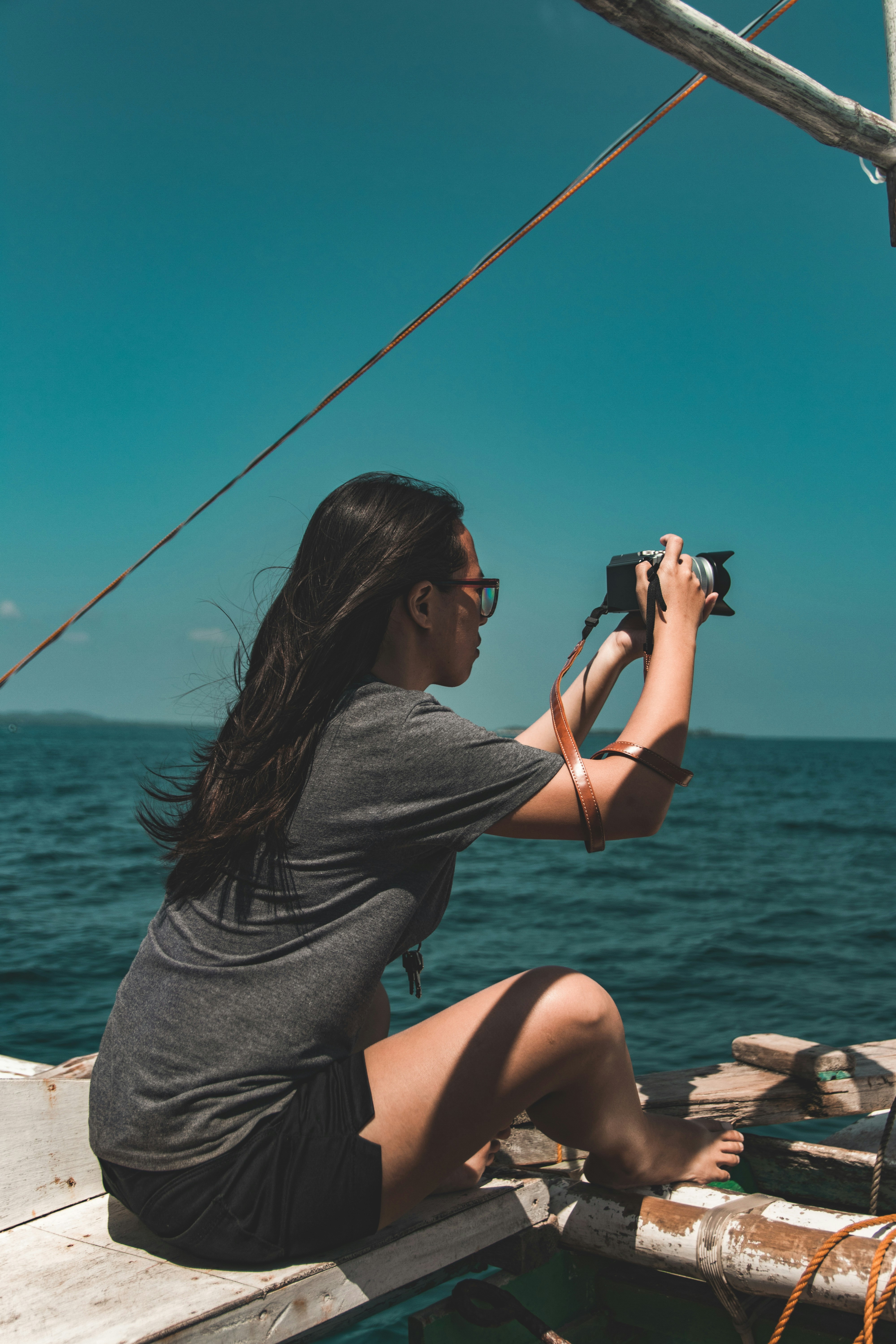 女,女,相機(jī),照相,照相,長發(fā),船,坐著,科技,海洋,海岸,航海,遠(yuǎn)眺,相機(jī)帶,藍(lán)天,太陽,夏天,戶外,大自然