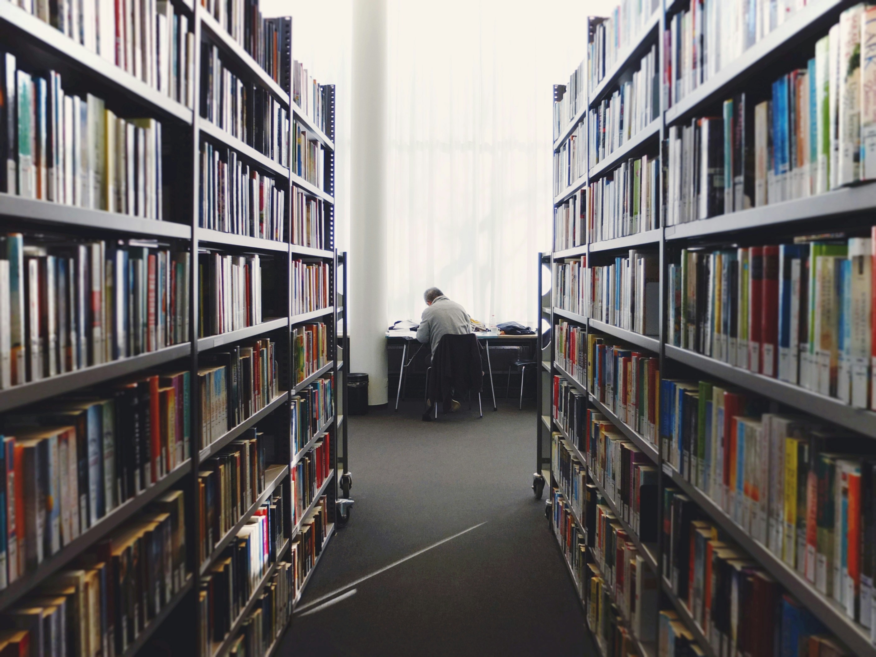 圖書館、書架、窗戶、建筑物、陽臺