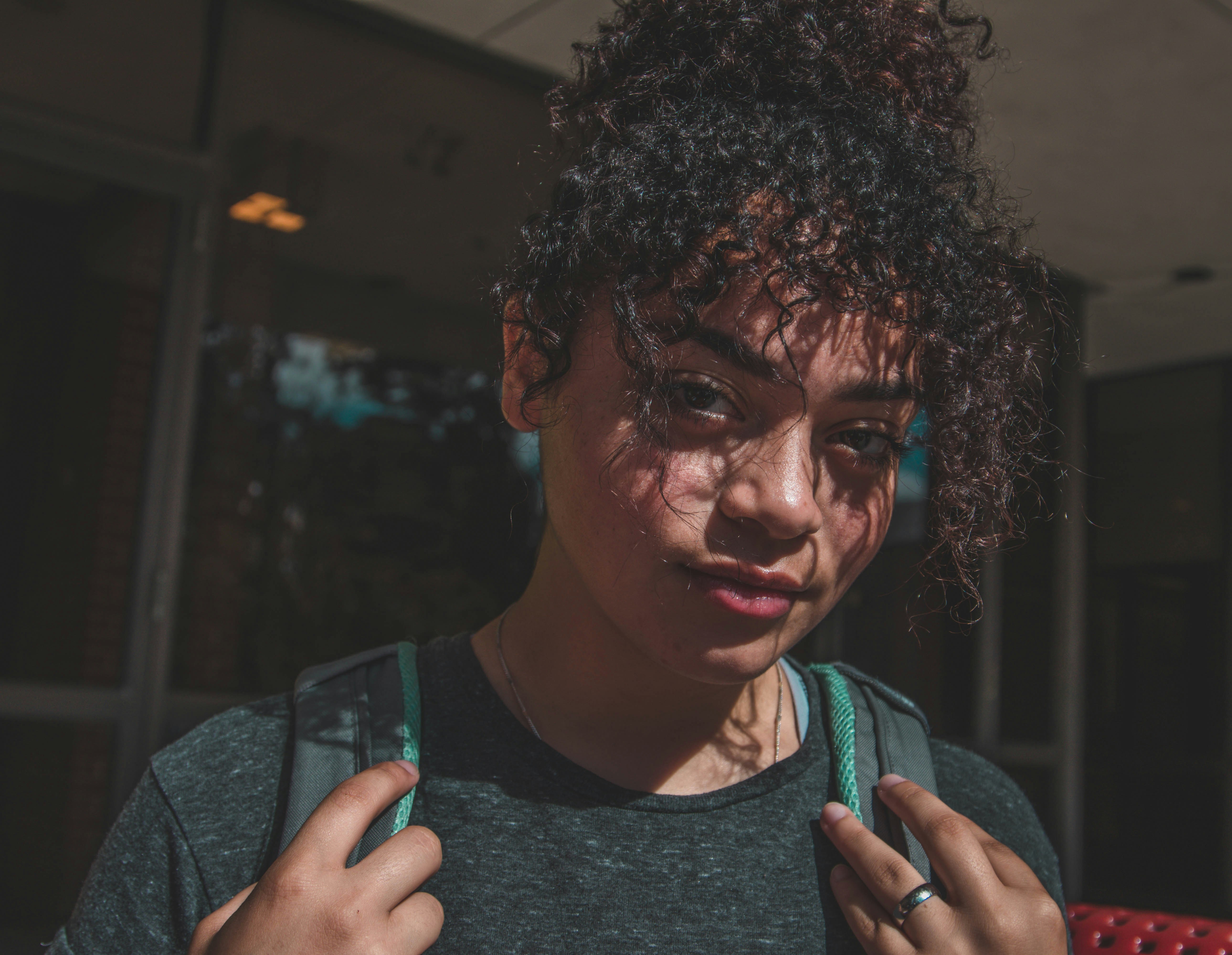 學(xué)生,女學(xué)生,女人,青少年,畫像,臉,卷發(fā)
