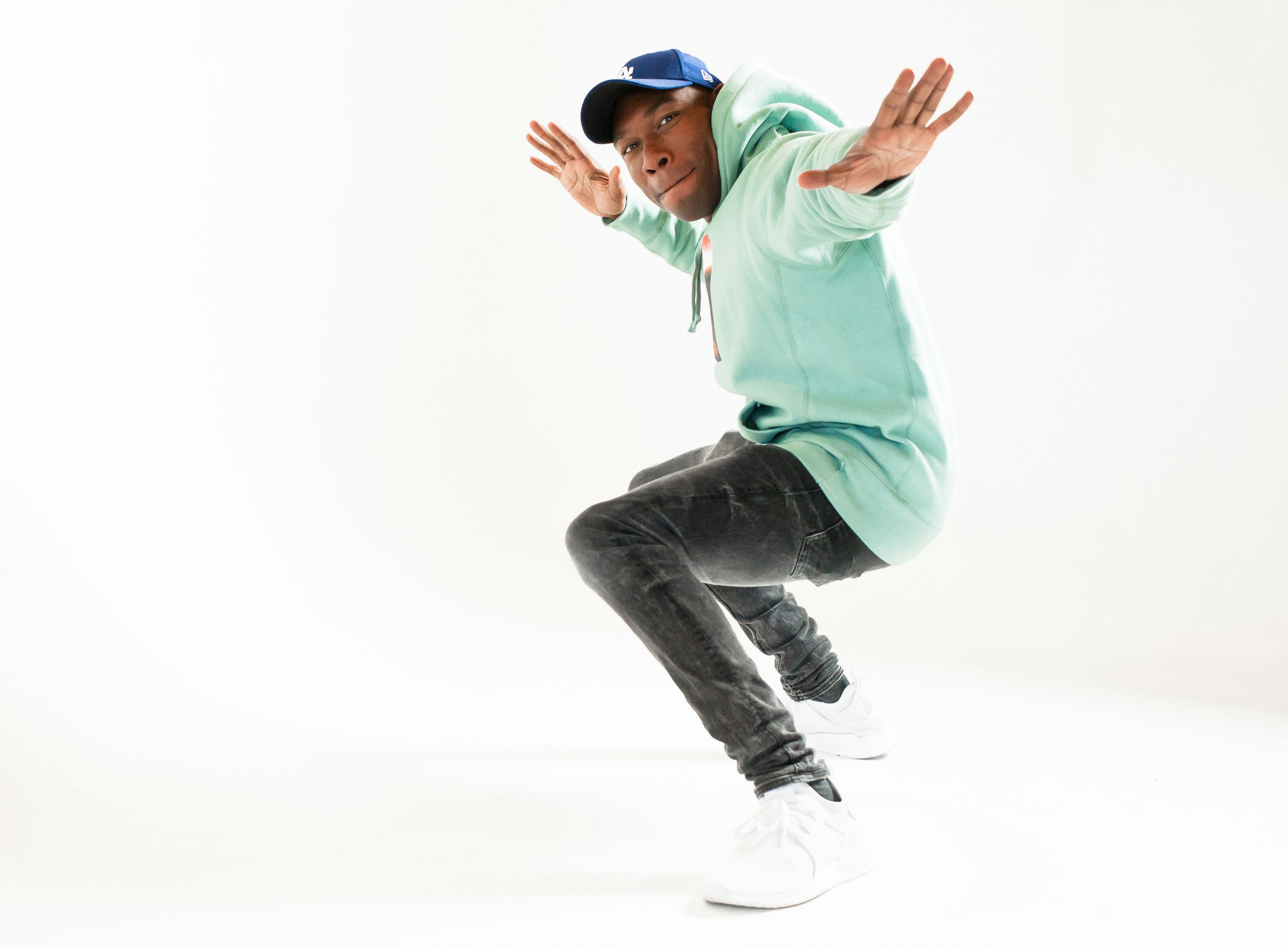 工作室,人,男人,男人,男人,站立,肖像,明亮,室內(nèi),街頭,街頭,年輕,帽子,帽子,時(shí)尚,活力,連帽衫,非洲裔美國人,攝影師,天行者