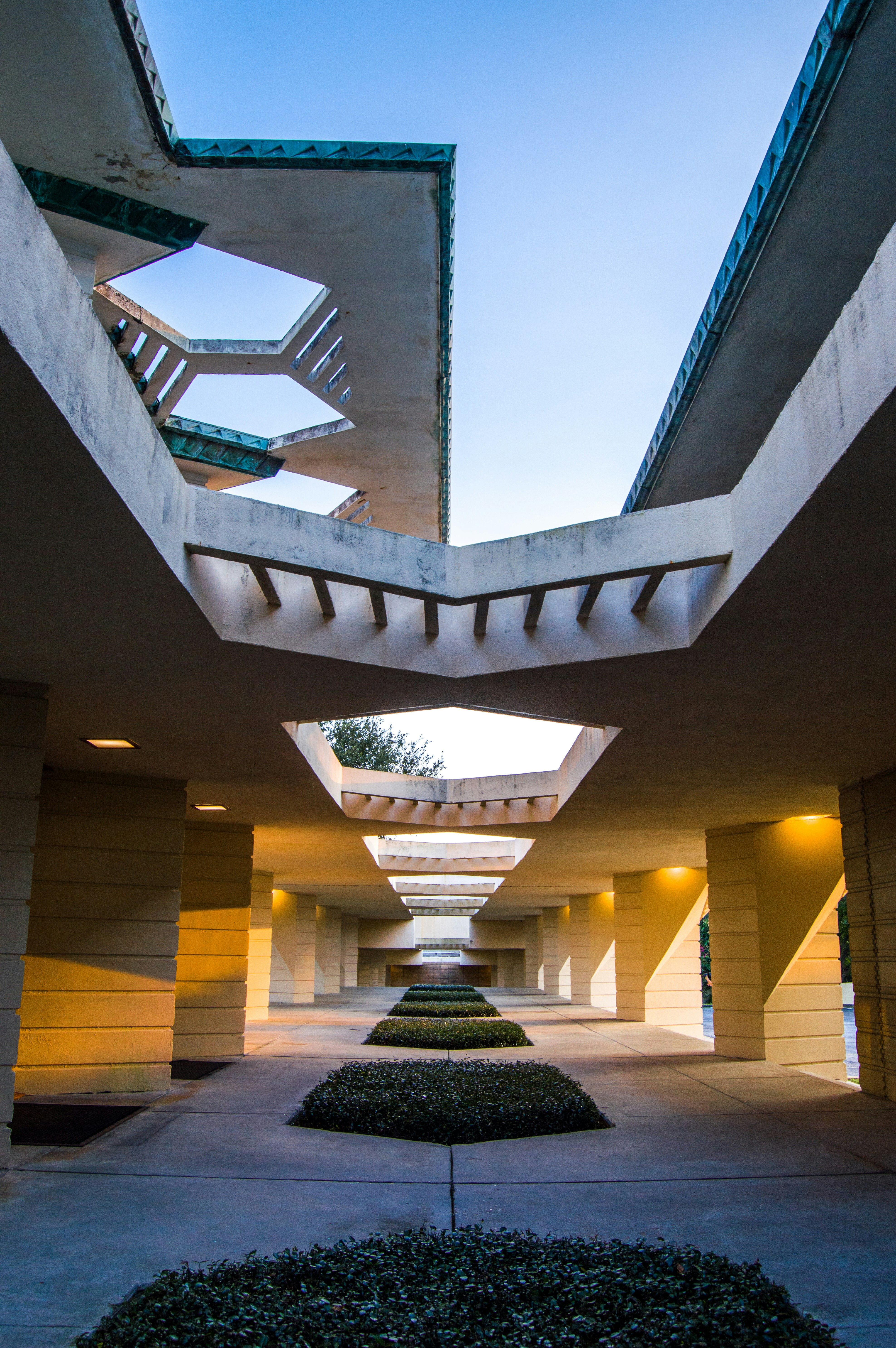 建筑、燈光、柱子、建筑、結(jié)構(gòu)、陰影、夜晚、黃昏、黎明、混凝土、城市、輝光、天空、美化、通風(fēng)