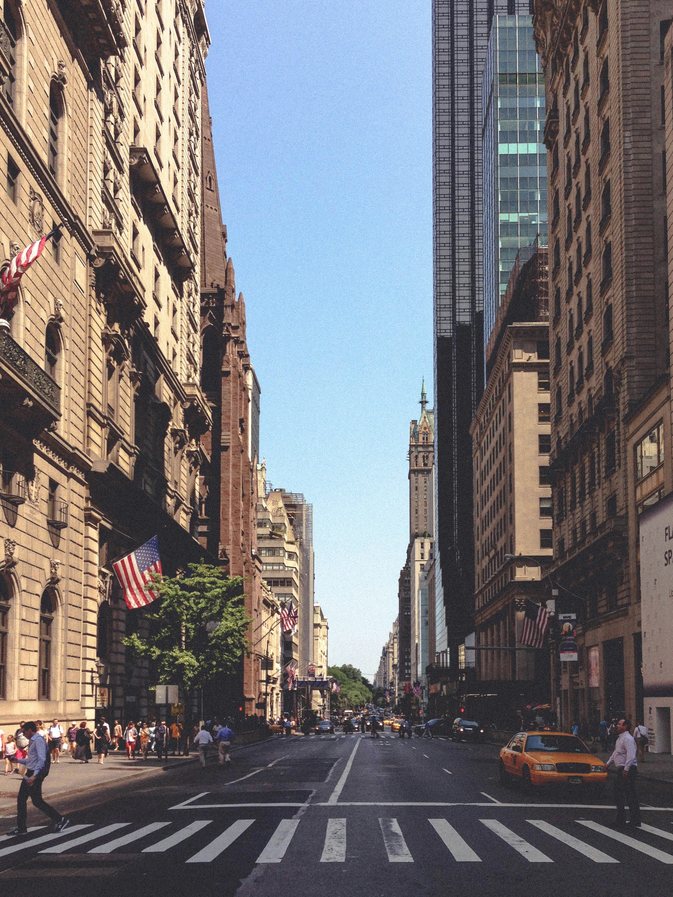 街道,城市,建筑,鄰里,單程,磚塊,建筑,人行道,消防水帶,路燈,路燈,路標,紅色,藍色,城市,迫擊炮,英語債券,安靜,停止
