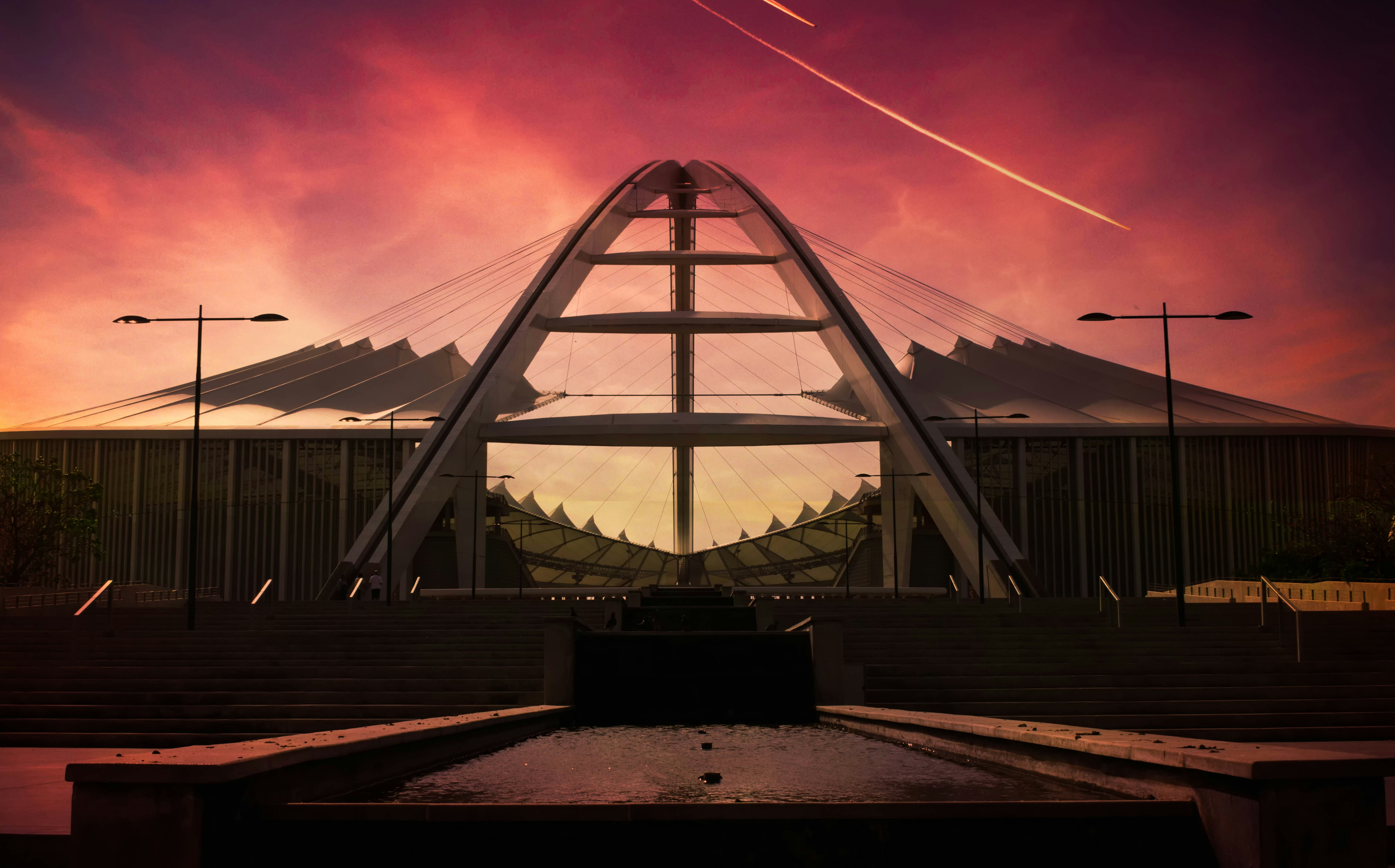太陽,紫色,城市,競技場,體育場,足球,日落,天空,建筑