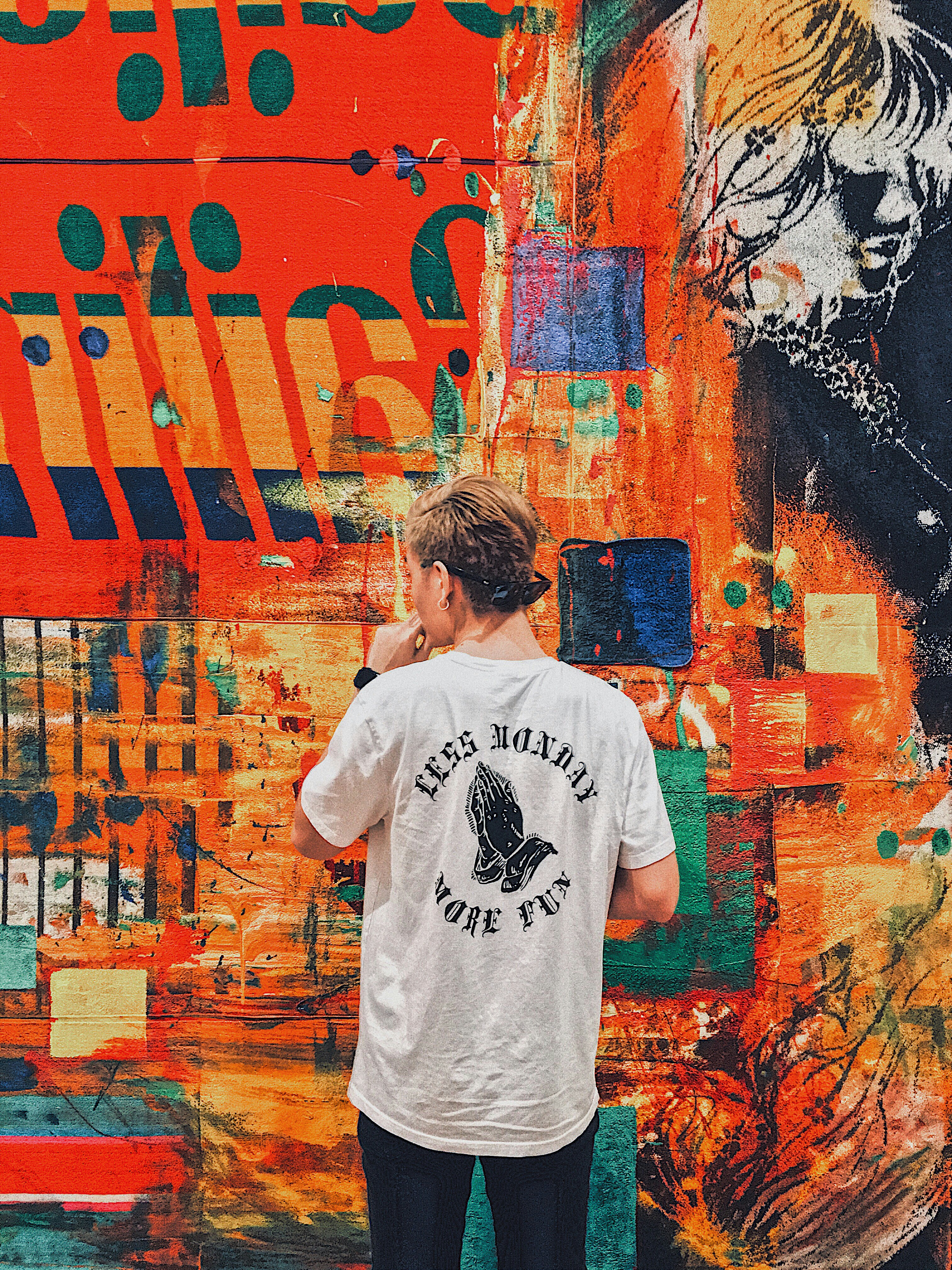 五彩繽紛的城市街頭藝術涂鴉壁畫在蒼白的城墻下,507街