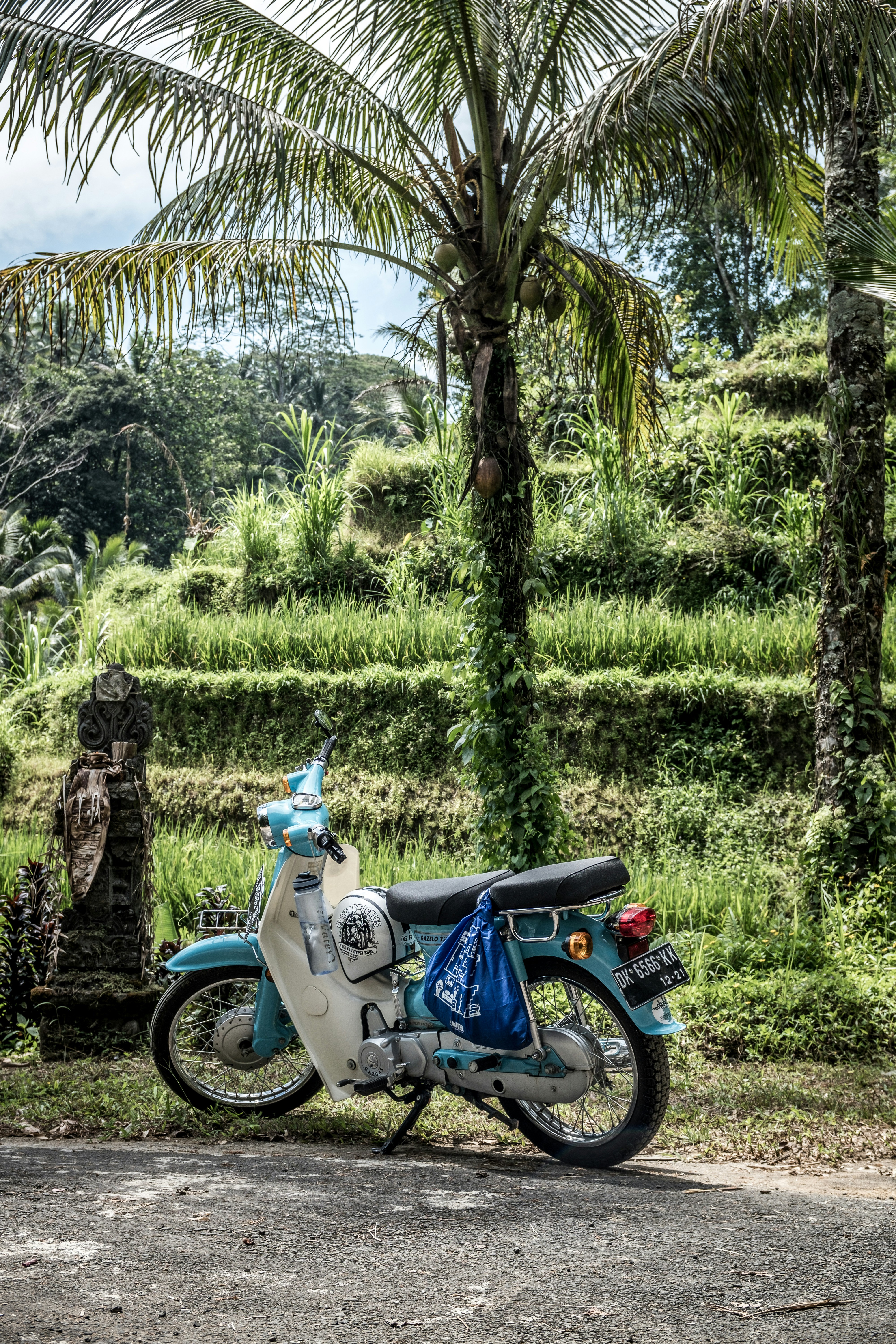 樹(shù)木,輕便摩托車(chē),摩托車(chē),摩托車(chē),摩托車(chē),汽車(chē),草地,綠色,青翠,熱帶,綠松石,夏天,停車(chē)場(chǎng),陰影,印尼,木頭,輪子,古董,旅游,傳統(tǒng)