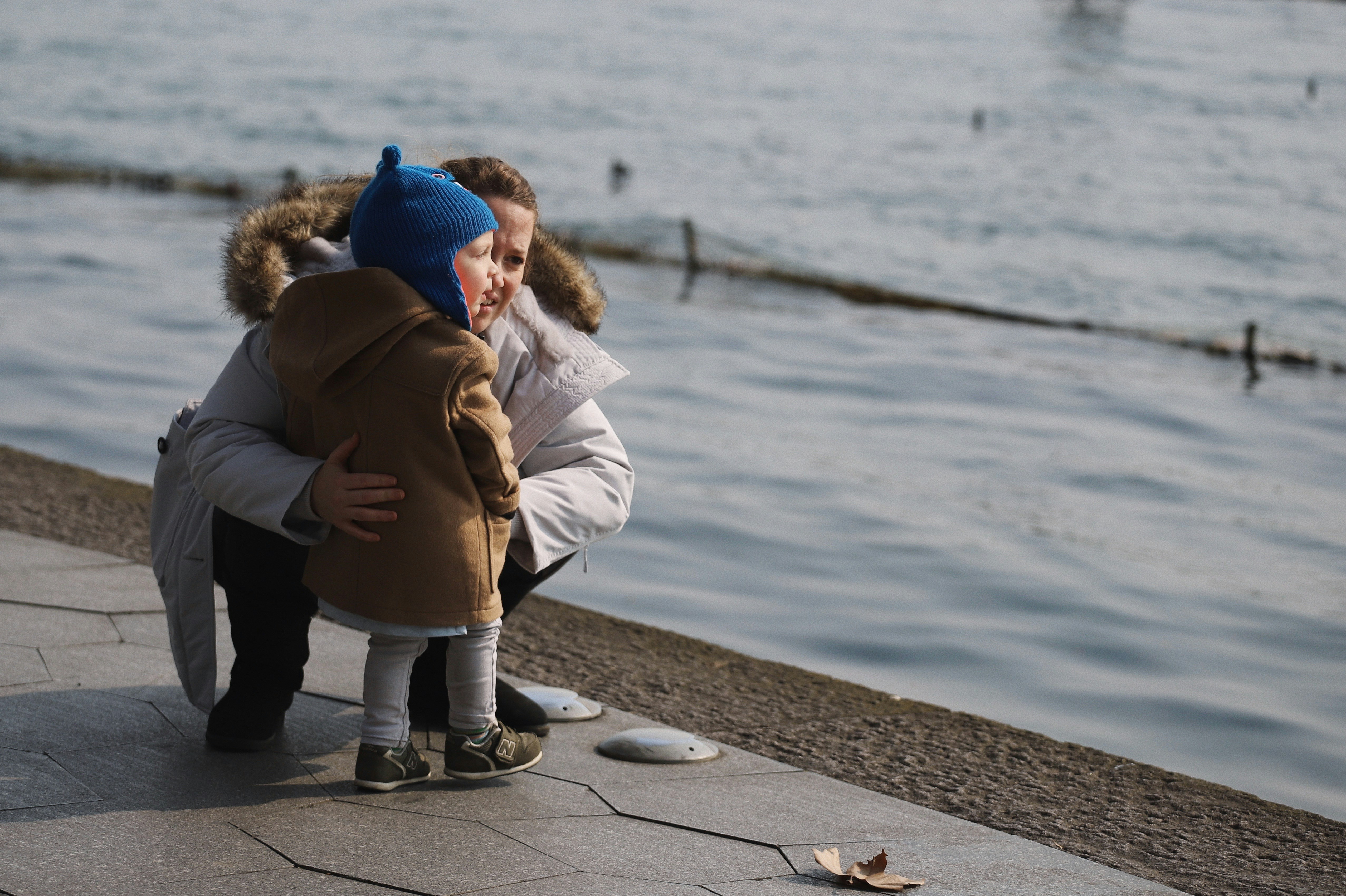 嬰兒,蹣跚學(xué)步的孩子,女人,女人,母親,孩子,水,湖,河