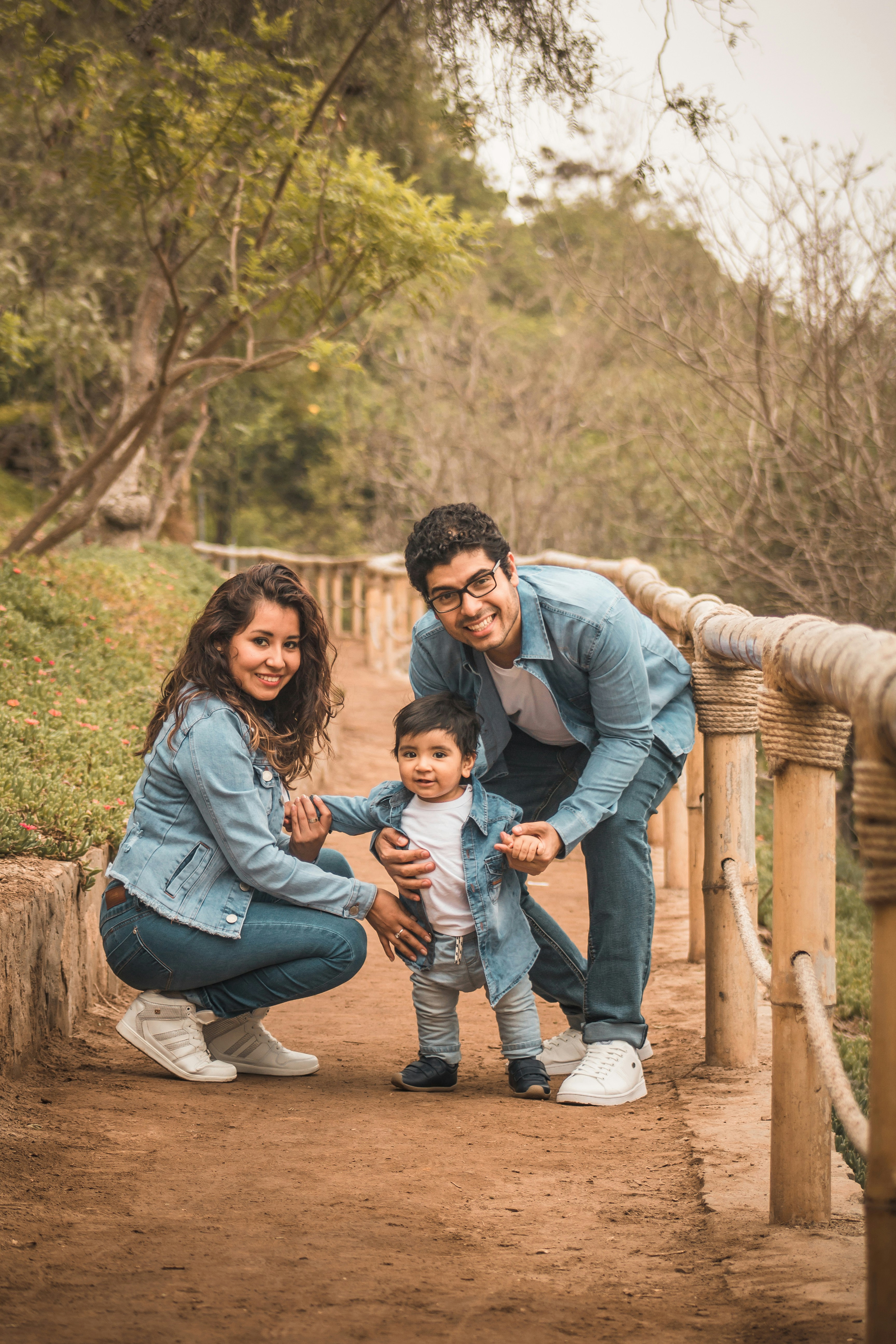 肖像,戶外,人行道,小徑,森林,樹,丈夫,妻子,男人,女人,夫婦,孩子,兒子,孩子,學(xué)步車,牛仔,年輕,男,男孩,女