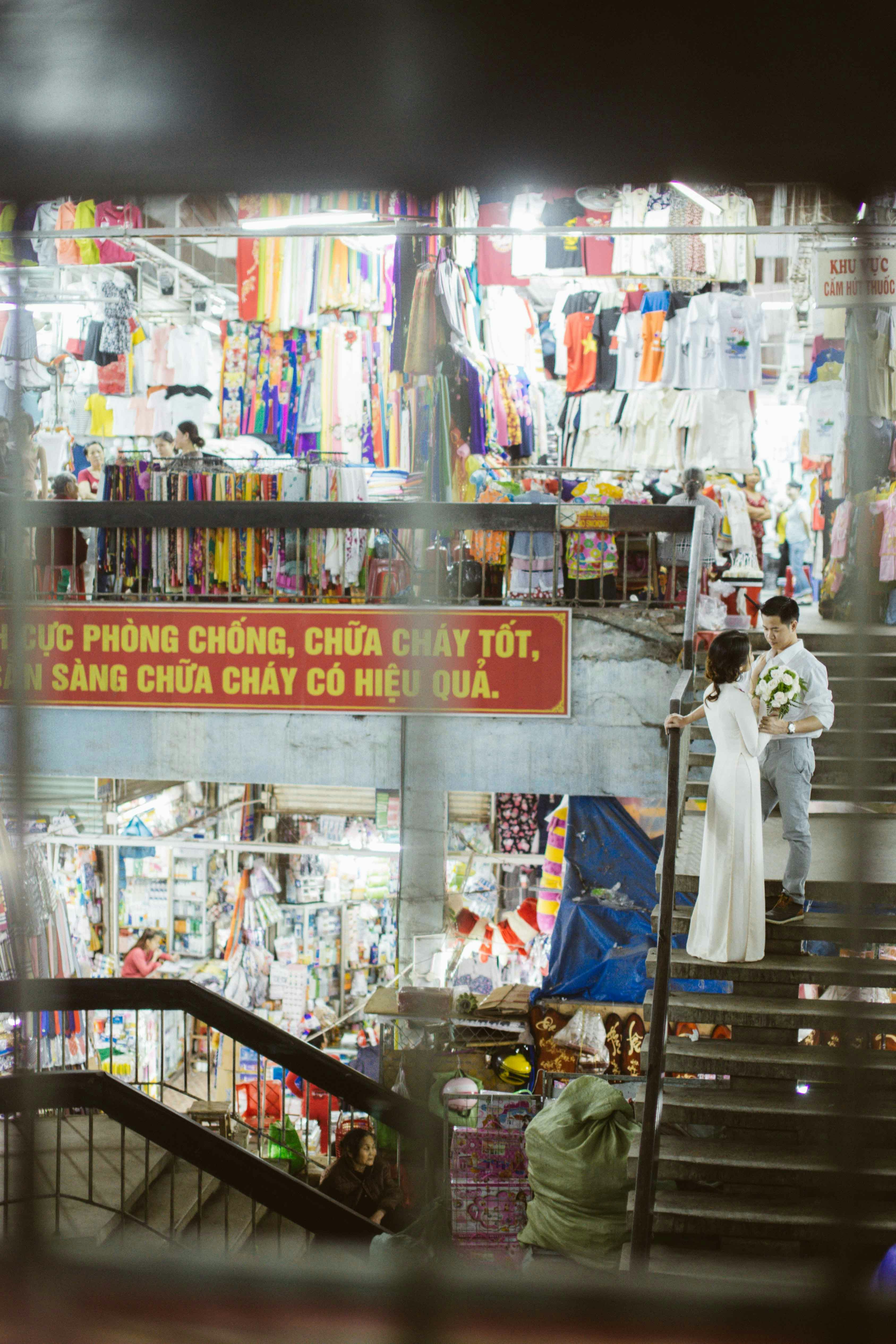 婚禮日,新郎新娘,新婚夫婦,街道,城市,城市,城市景觀,樓梯,結婚禮服,凱真女宴,婚前,色彩,東巴市場,廣東巴,越南,愛情,街頭婚禮