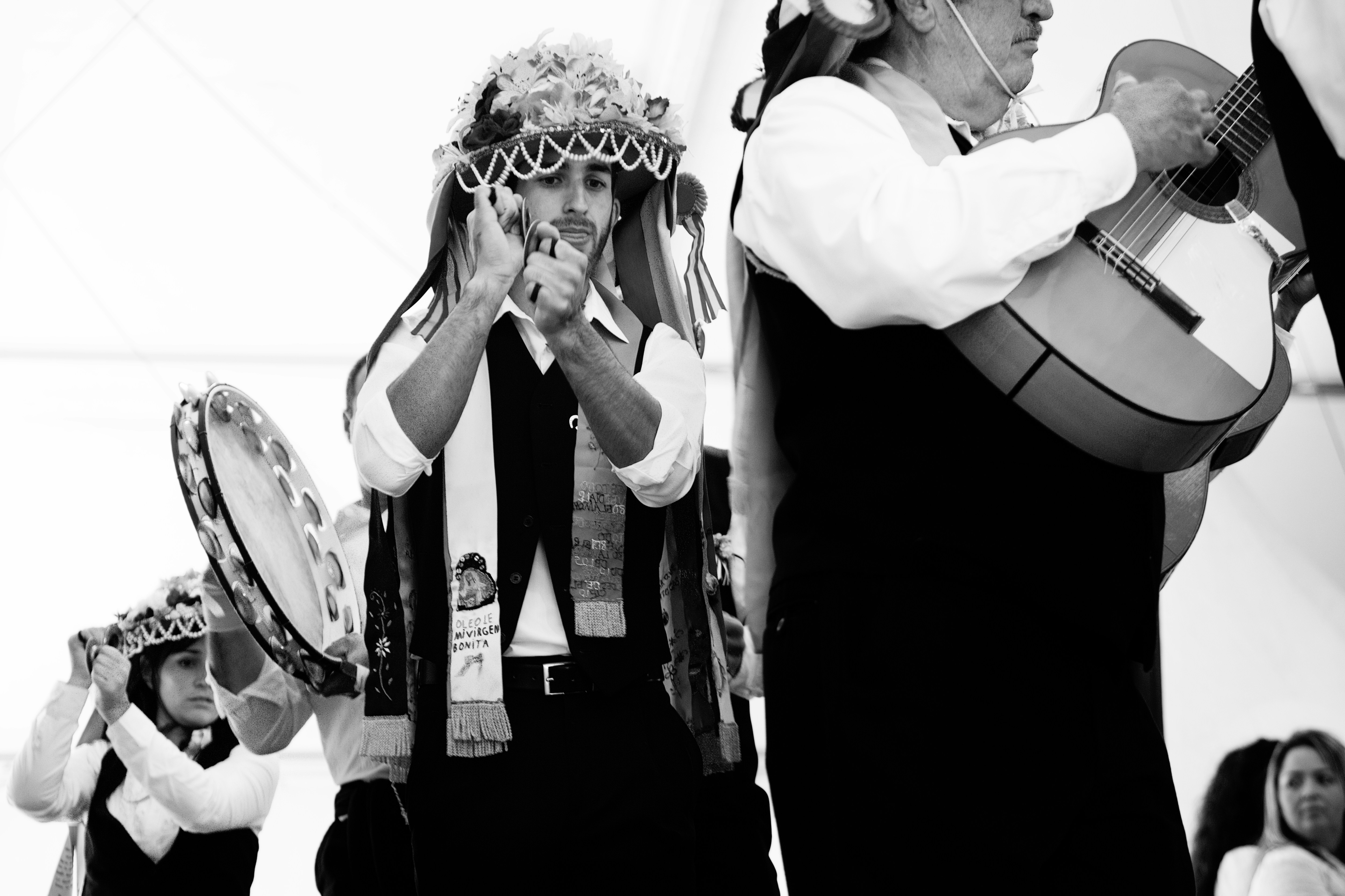 man,woman,male,female,band,guitar,tamborine,performer,costume,persona,puerto de la torre,fiesta mayor de verdiale,baile,cante,música,málaga,tradición flolclore,costumbre,blanco y negro,guitarra