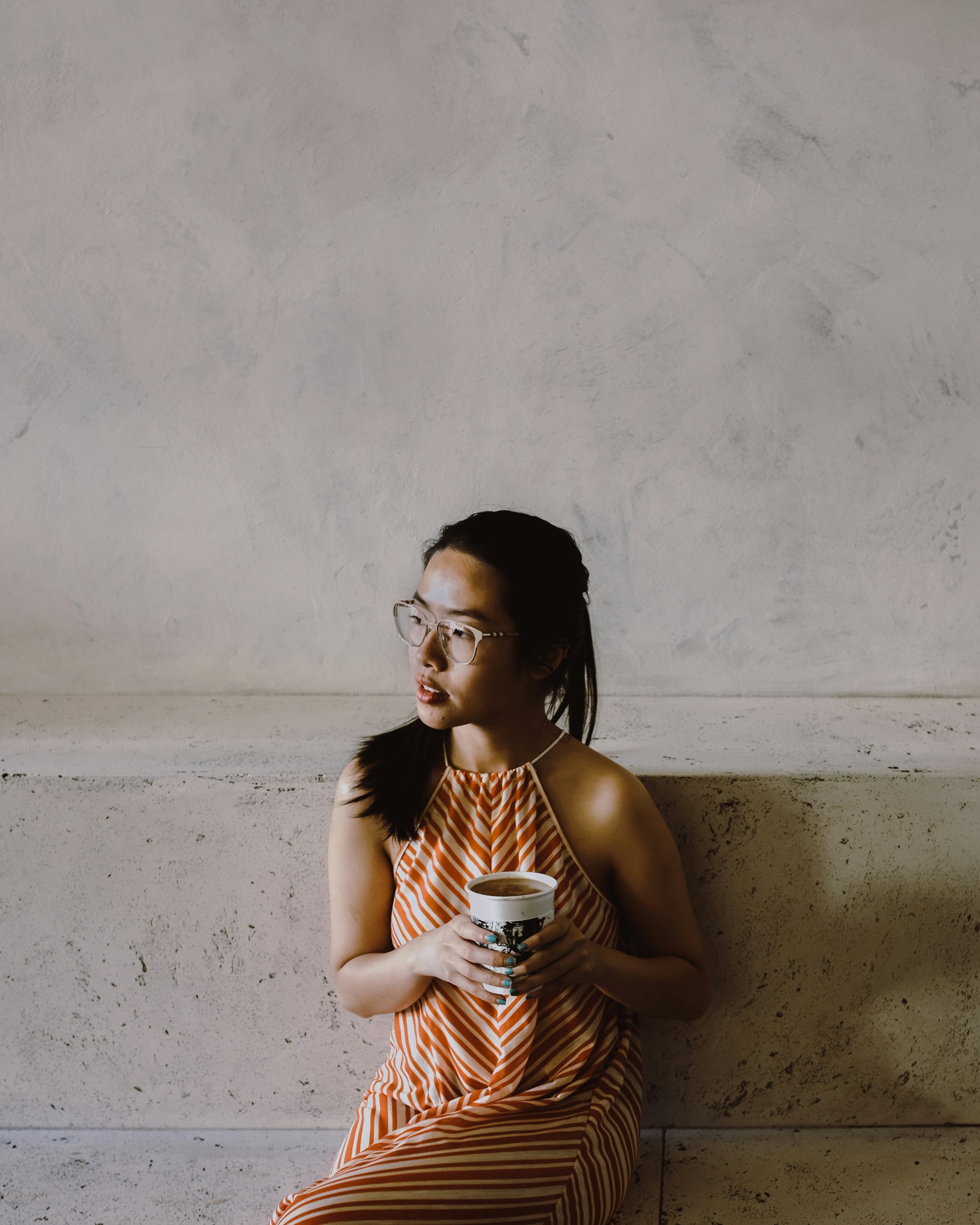 女人,畫像,女人,陽光,陰影,墻壁,石頭,條紋,眼鏡,亞洲,餐館,商店,越南,越南,飲料,茶,白色,極小