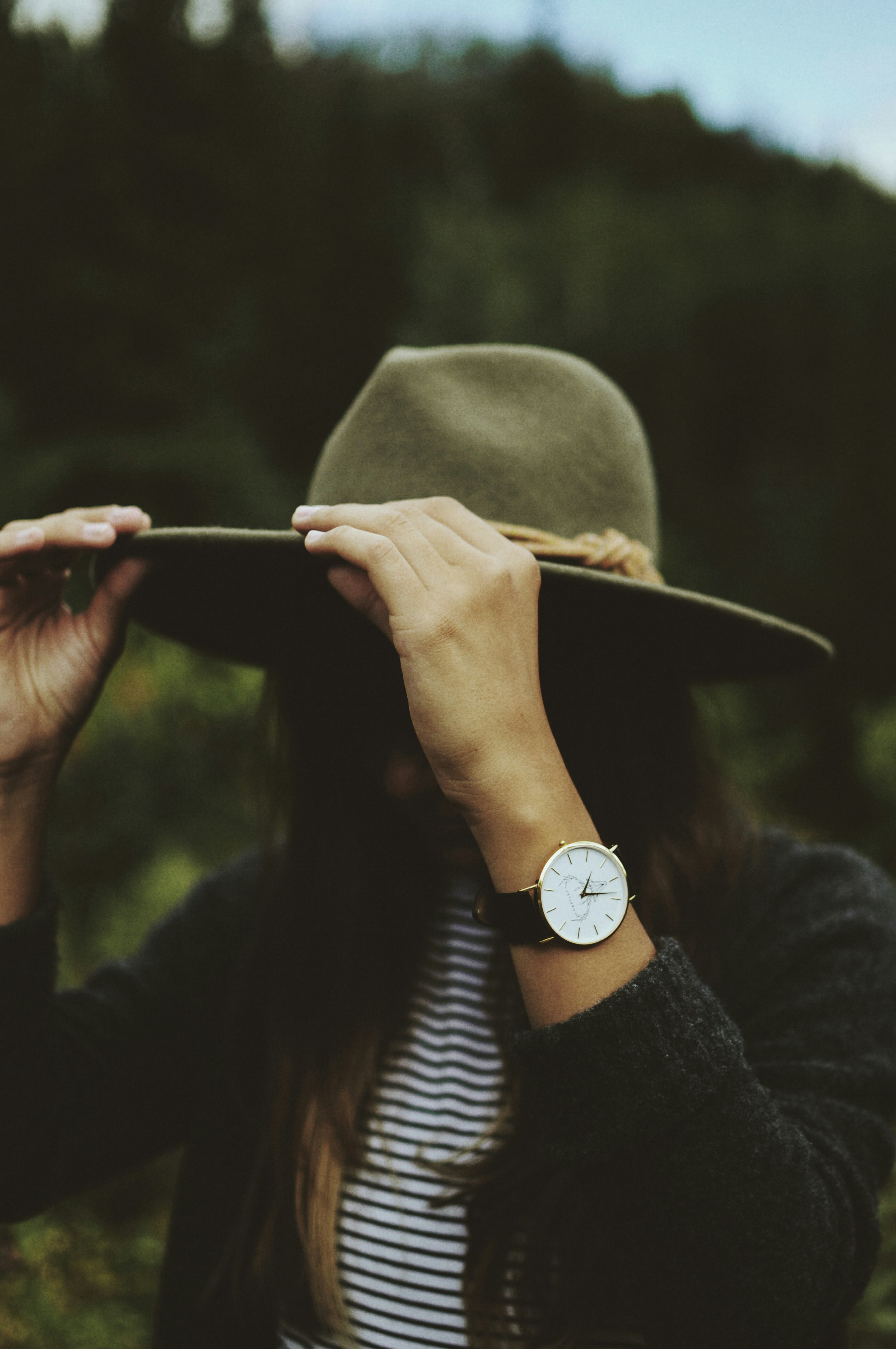 女人,女人,條紋,毛氈,皮革,手表,高加索人,帽子,綠色,波克,森林,毛衣,探險(xiǎn),松樹(shù),哈特利,表手,結(jié),長(zhǎng)袖,白天,條紋襯衫