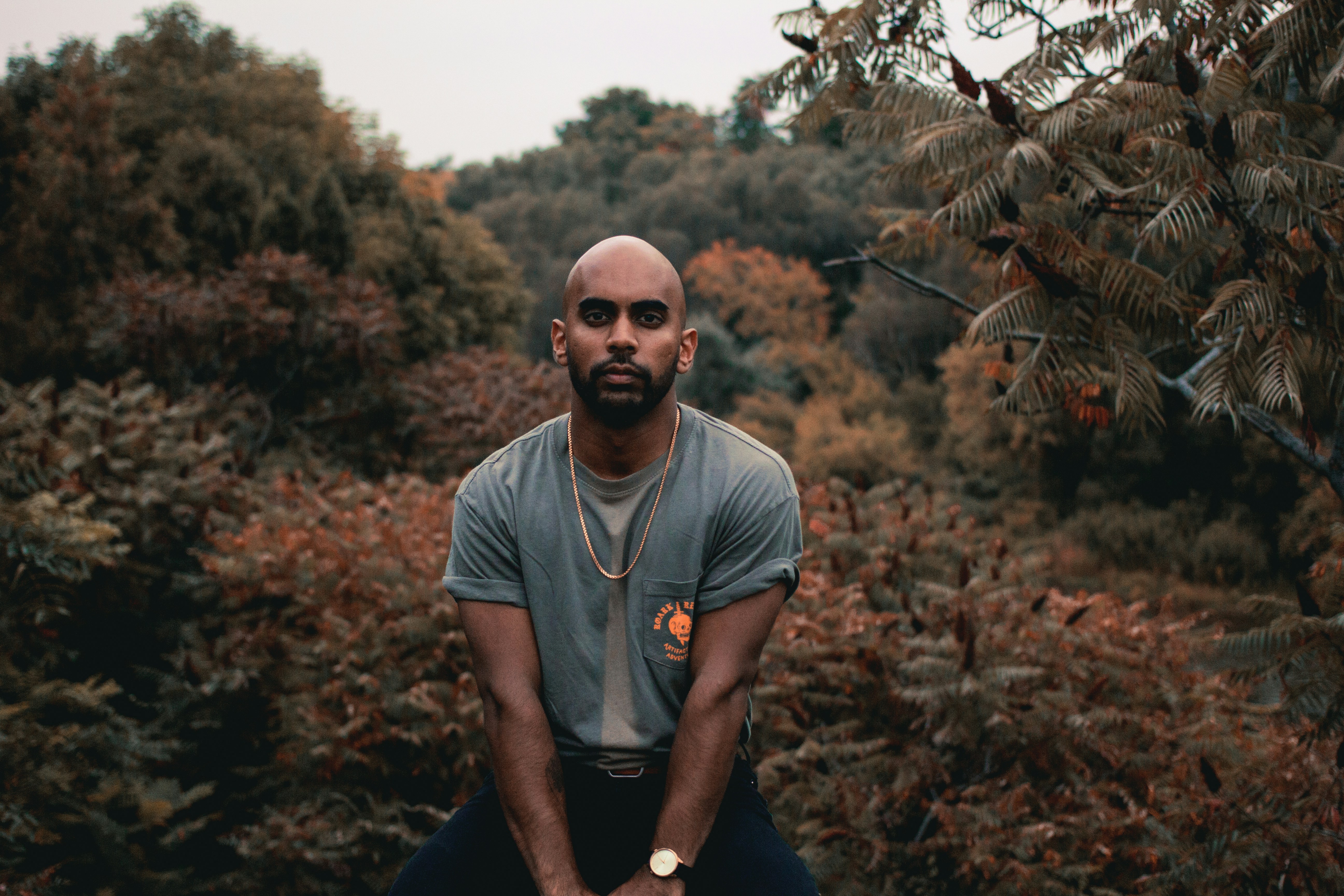 婦女戴大環(huán)耳環(huán)和黑色無(wú)袖襯衫靠近石墻